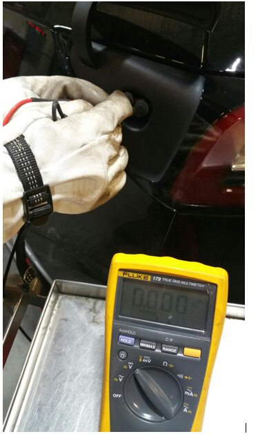 注Make sure to wear PPE (HV gloves, safety glasses) when working on high voltage components, Measure B+ to B-, B- to Ground, and B+ to Ground (use rear left door striker as a ground for the isolation check), If voltage is greater than 10V, Pack contactors are not open or welded, Stop work and reach out to Service Engineering