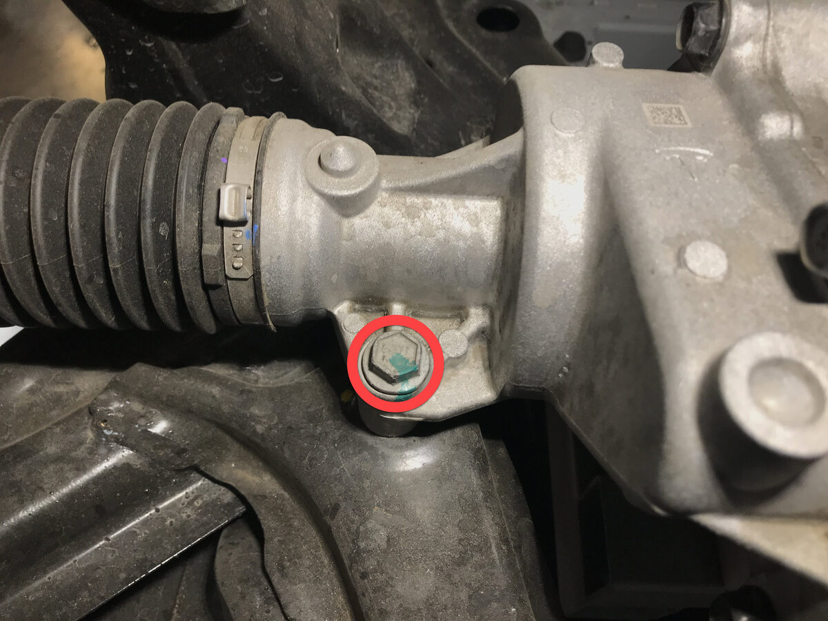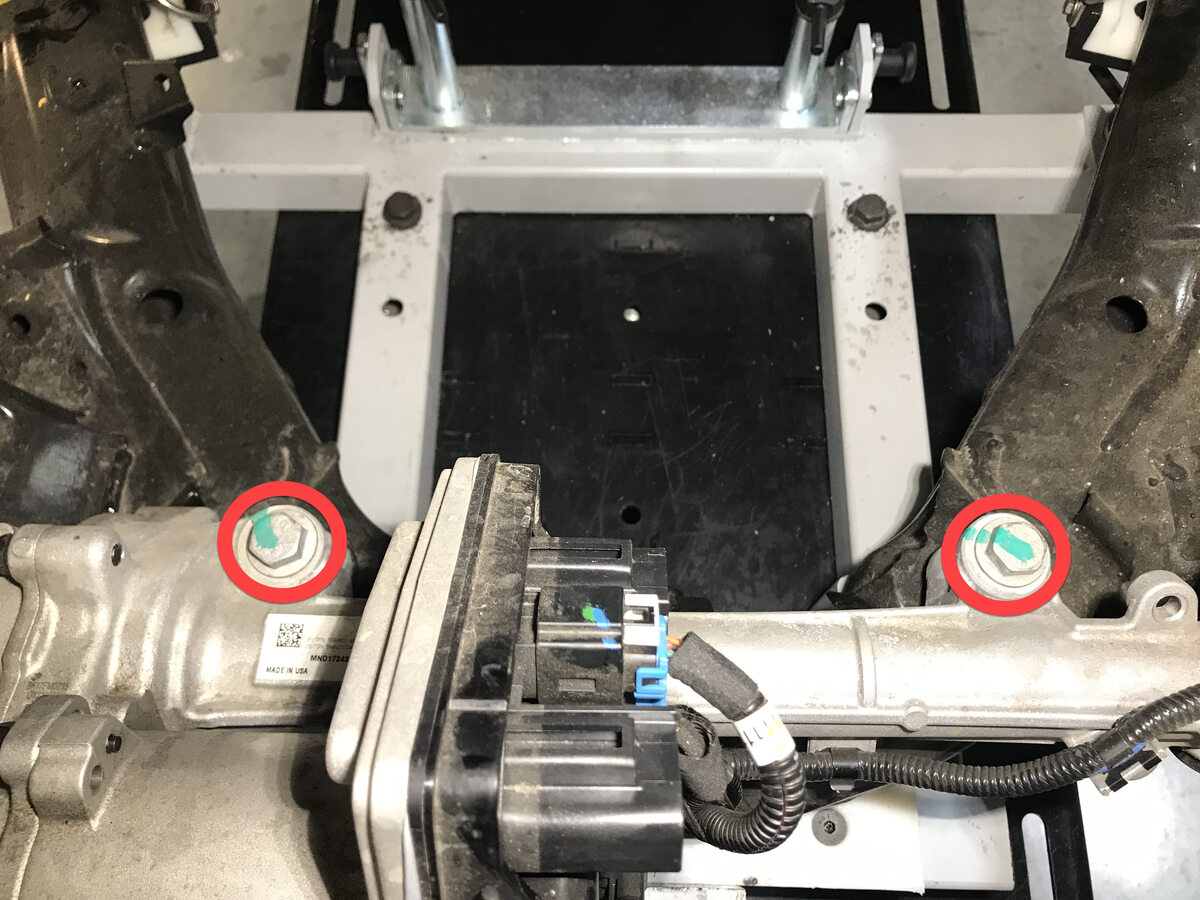紧固将转向机构总成固定到前副车架的前部螺栓。