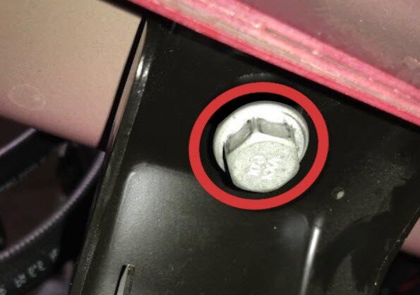 - 拆卸并弃置将左侧中间支柱固定到车身的螺栓,然后对车辆右侧重复此步骤。