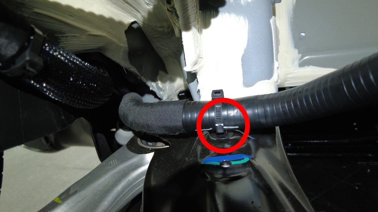 - 安装将前驱动单元旁路软管固定到前副车架的卡子。