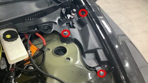 - 松开将左侧减震塔盖板固定到车辆的卡子(3 个),然后从车上拆下盖板。