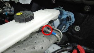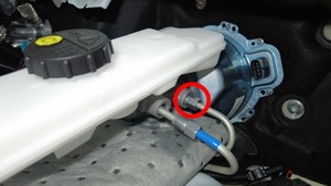 - 在制动助力器和储液罐区域下方放置吸水材料,清洁制动储液罐周围,然后拆下制动液储液罐的罐盖。