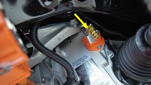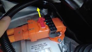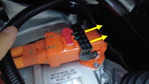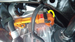- 将高压连接器杆锁安装到后驱动单元高压线缆连接器。