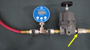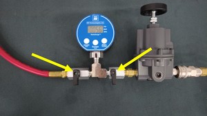 - 打开入口阀,然后将调节器缓慢调节至 1 psi。