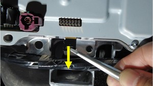使用尖凿滑动 SD 卡固定锁片,然后使用镊子从电脑上取出 SD 卡。