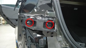 - 安装将后部中间支架固定到左尾灯支架的卡子。