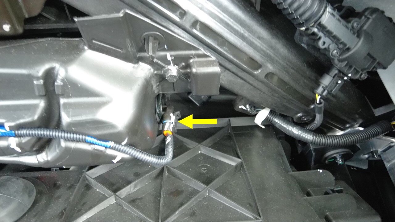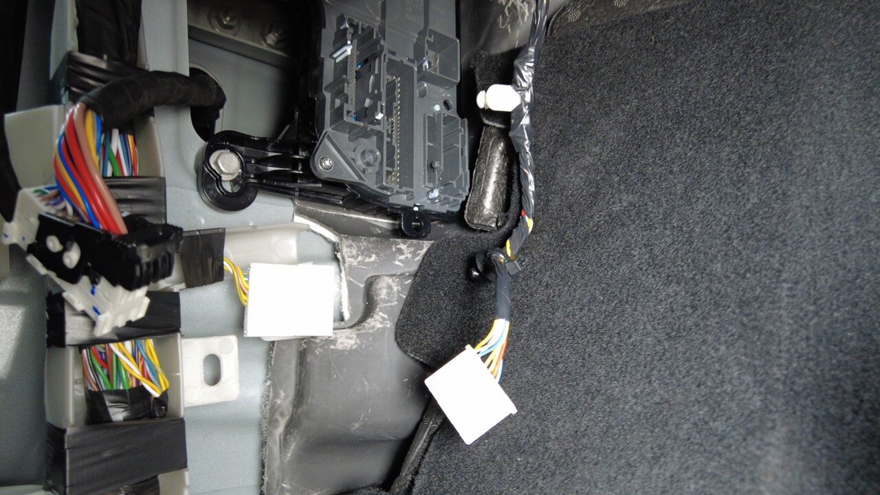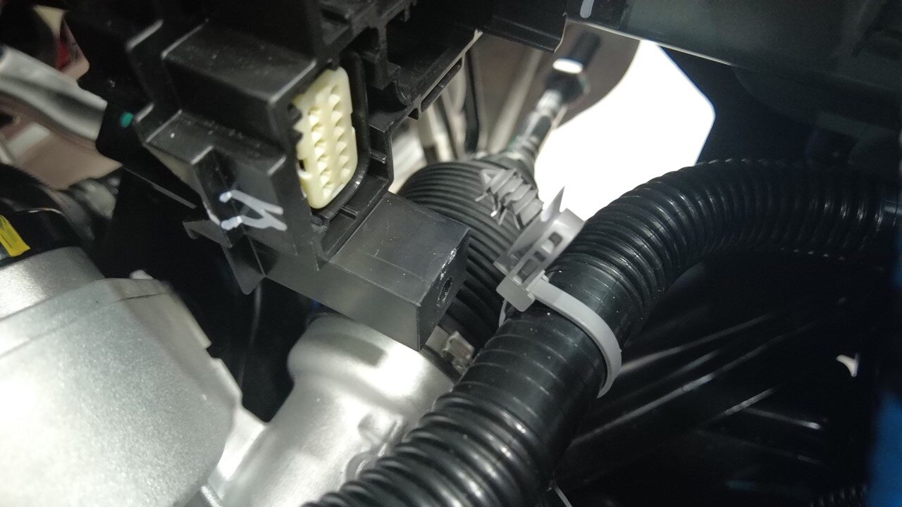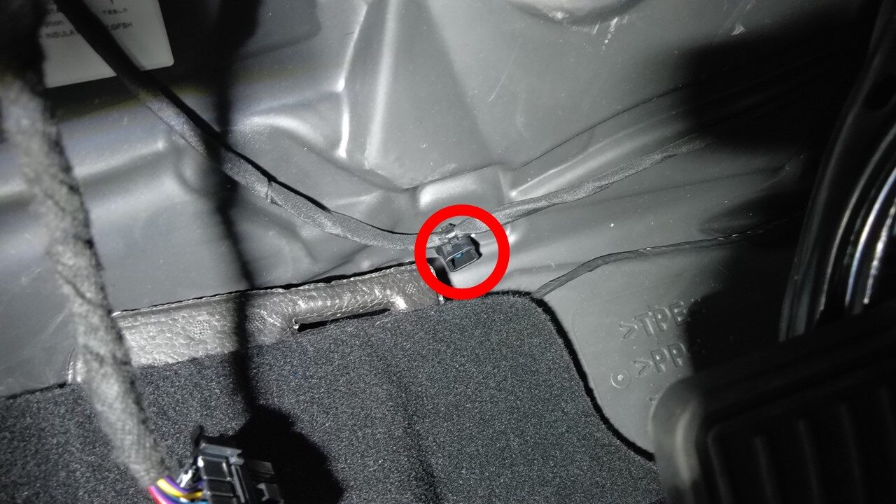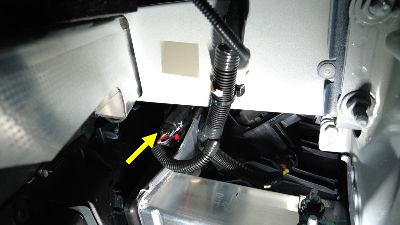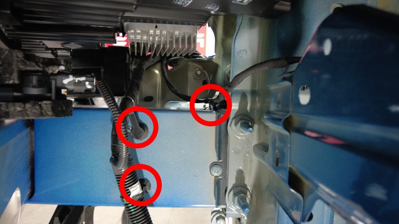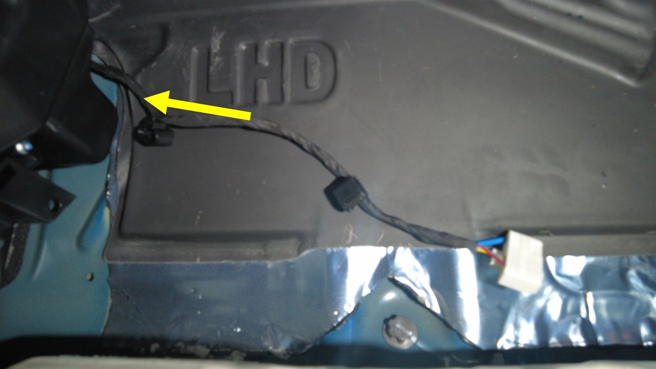 注确保塑料外壳方向正确,夹子朝向车架纵梁;将线束向下送入饰板后面