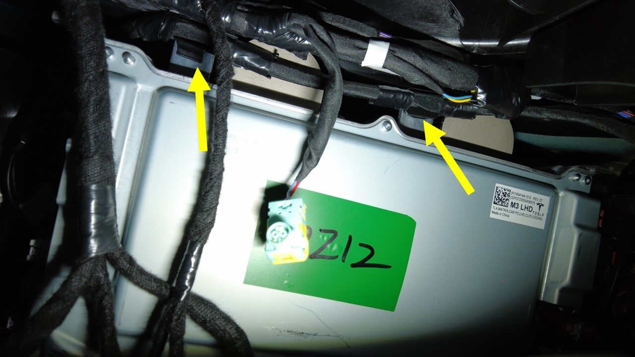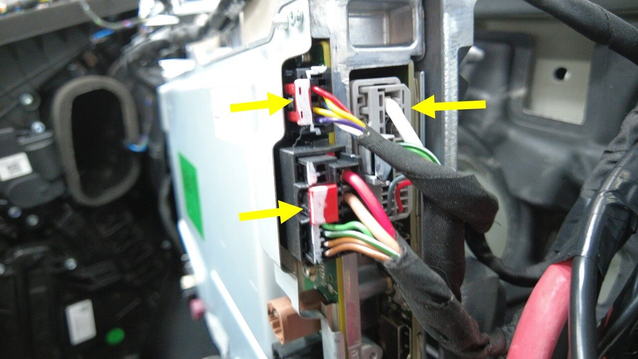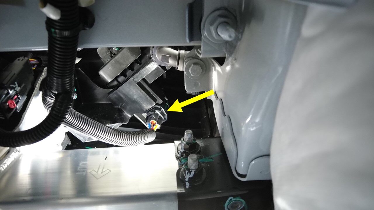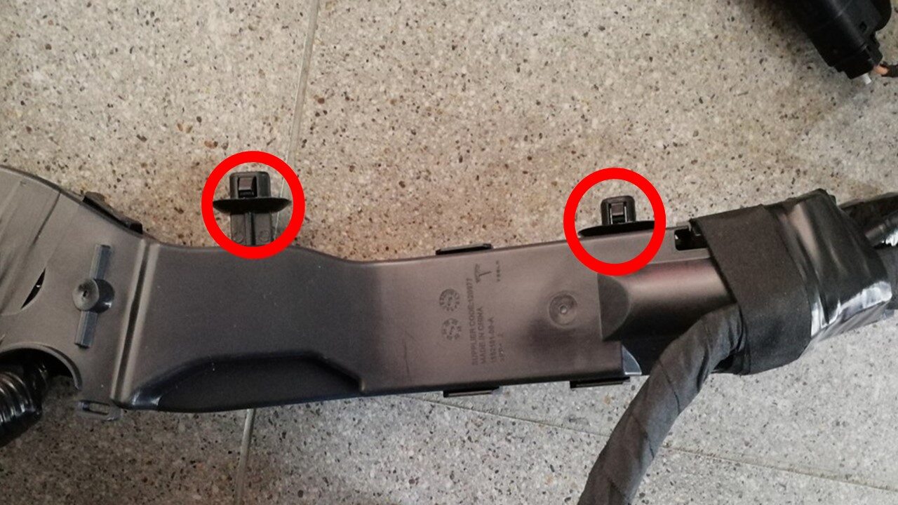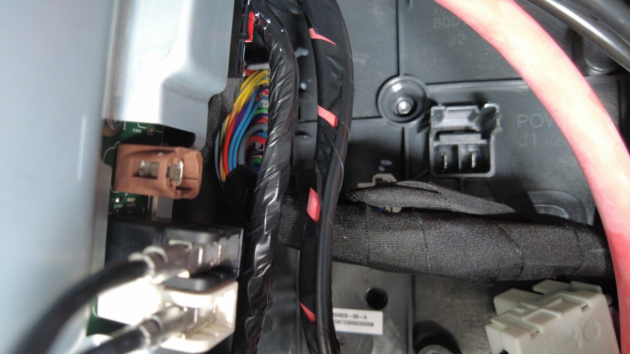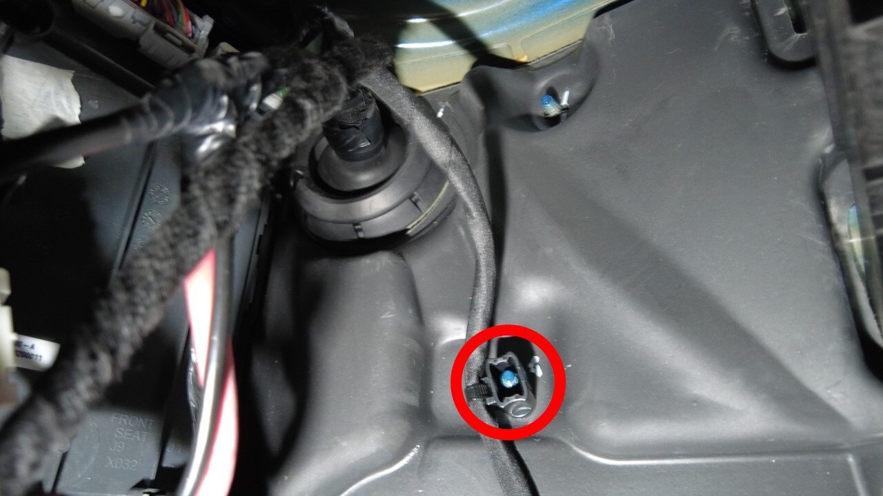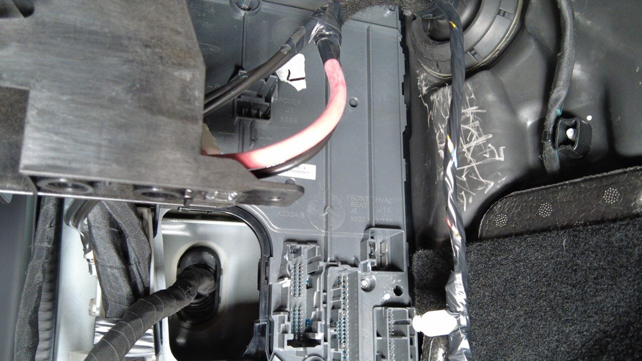 注确保塑料外壳方向正确,夹子朝向车架纵梁;将线束向下送入饰板后面