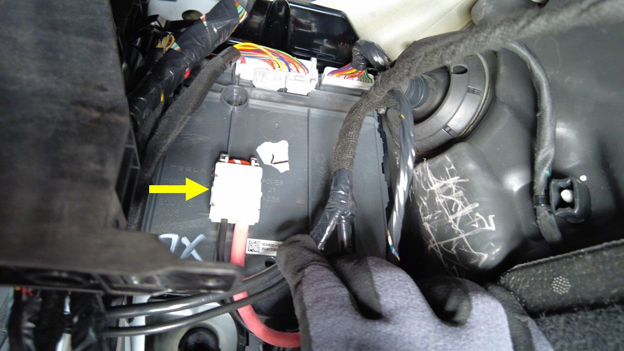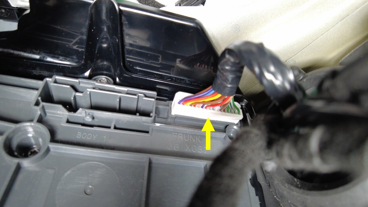 将 J6 前备箱连接器从左侧车身控制器上断开