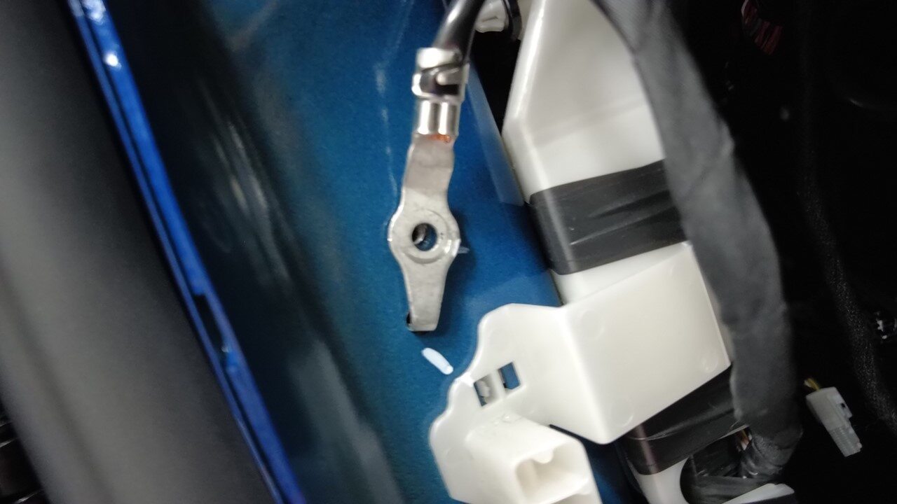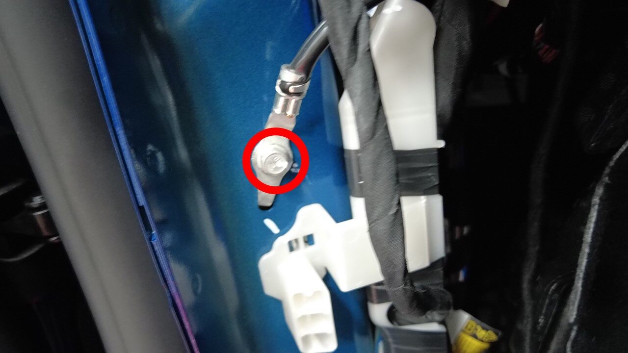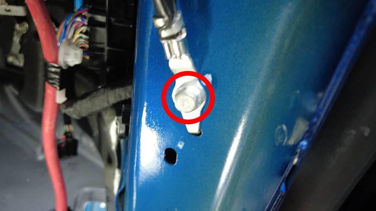 安装用于固定左侧 A 柱区域周围左前线束接地线的螺栓