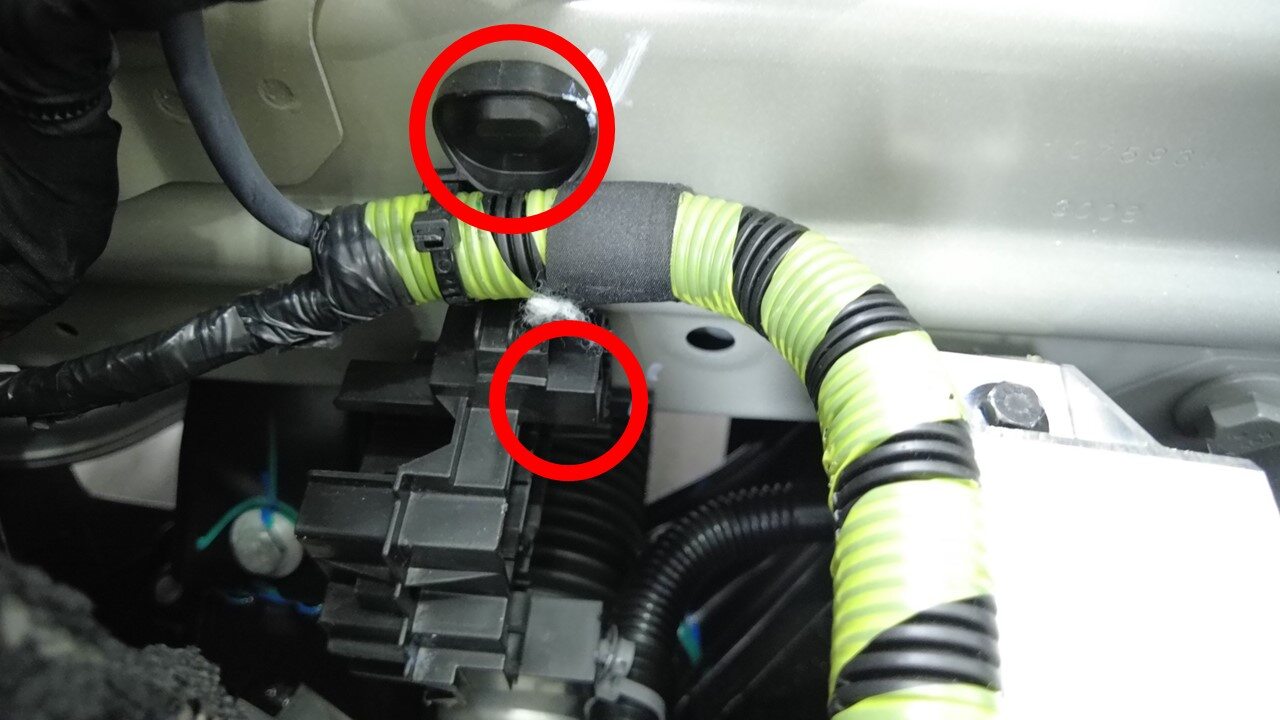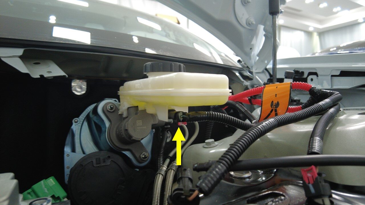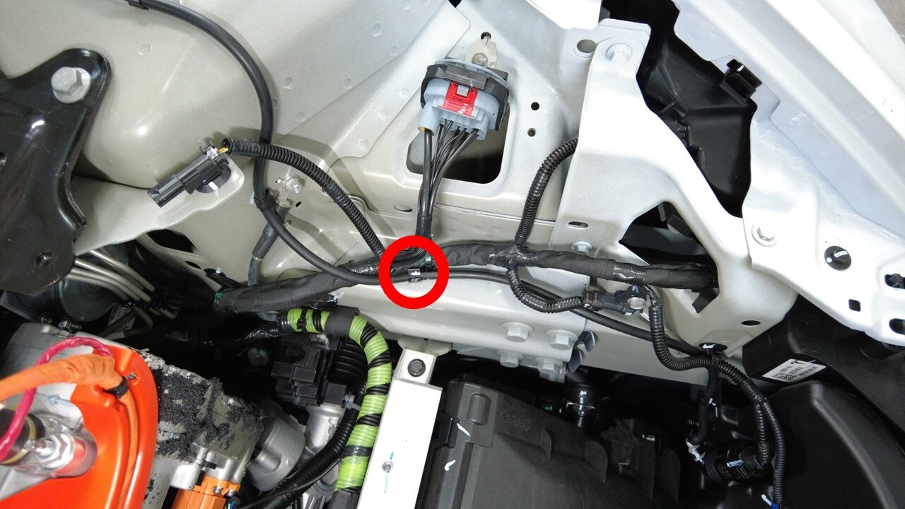 - 将前部线束的左侧从轮毂内衬排布到前备箱区域