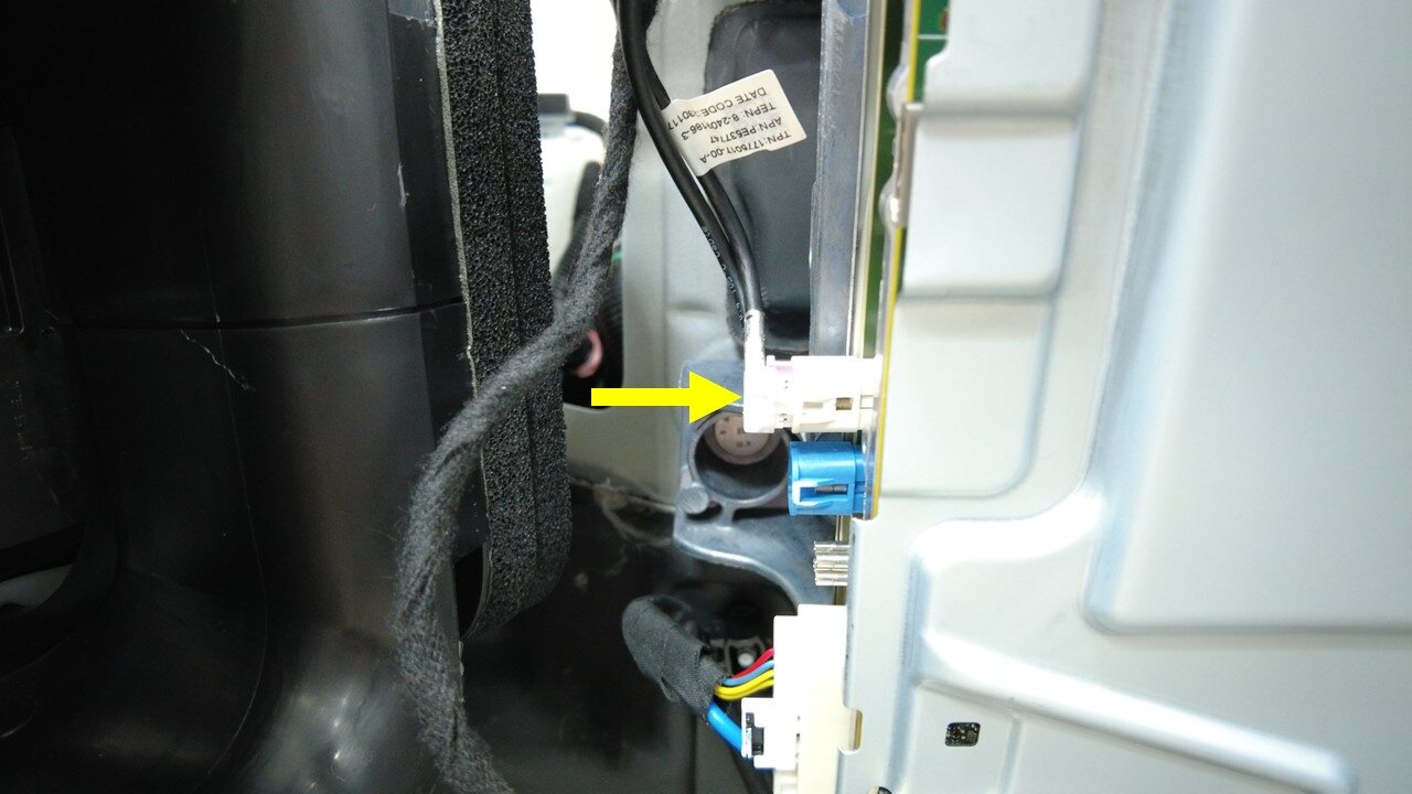 将前部线束白色连接器 X909 从左侧车身线束上断开