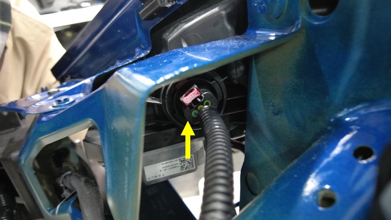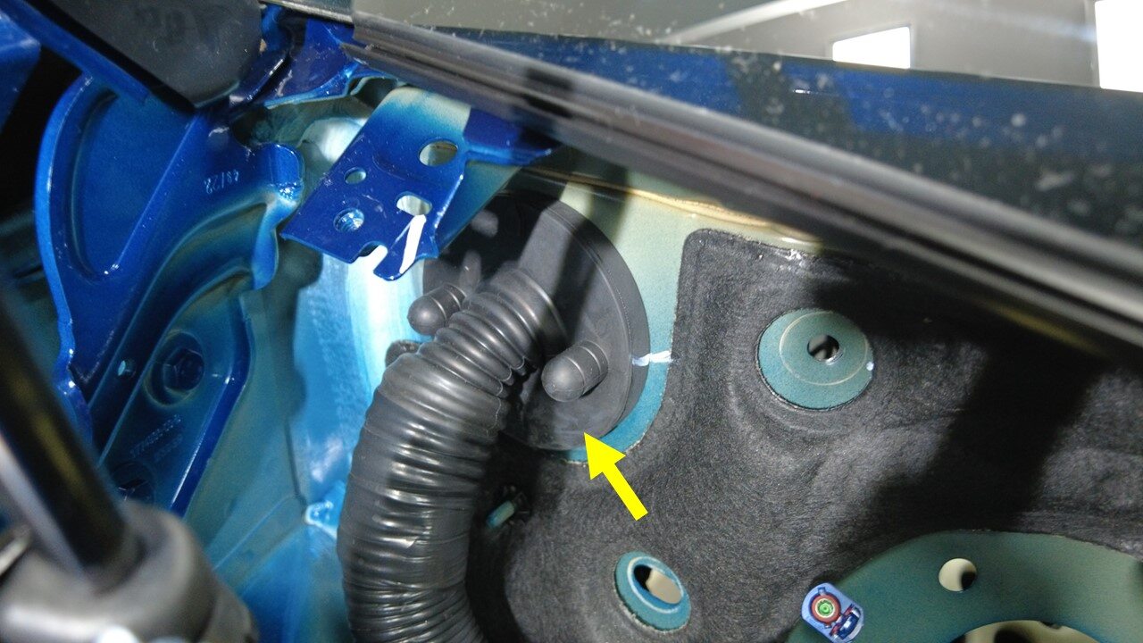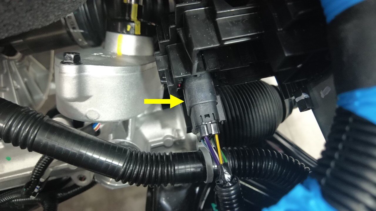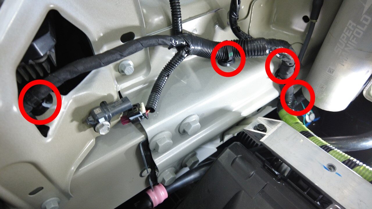 - 将前部线束的右侧从轮毂内衬排布到前备箱区域