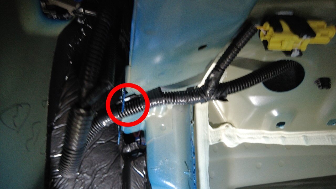 - 将左前线束推入驾驶舱,然后紧固索环。