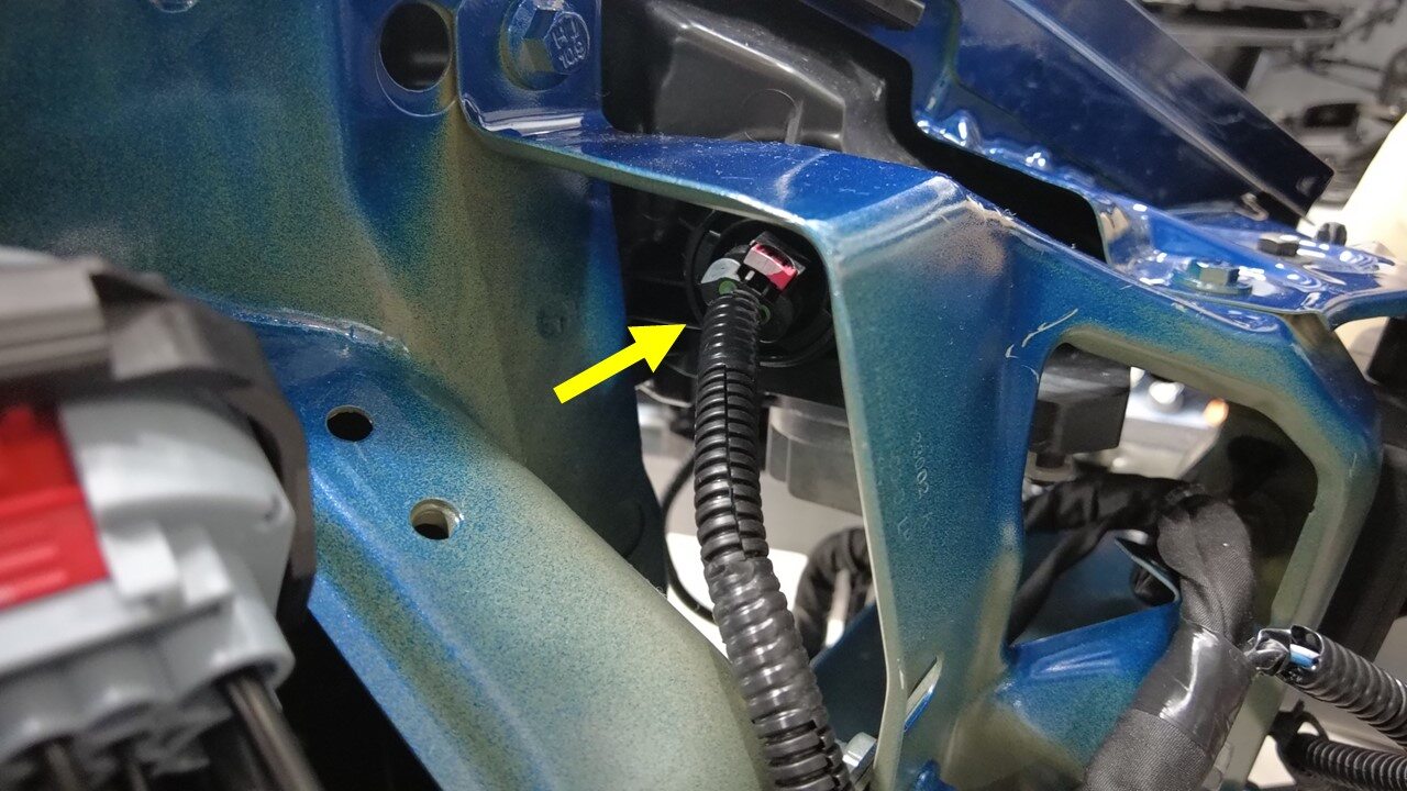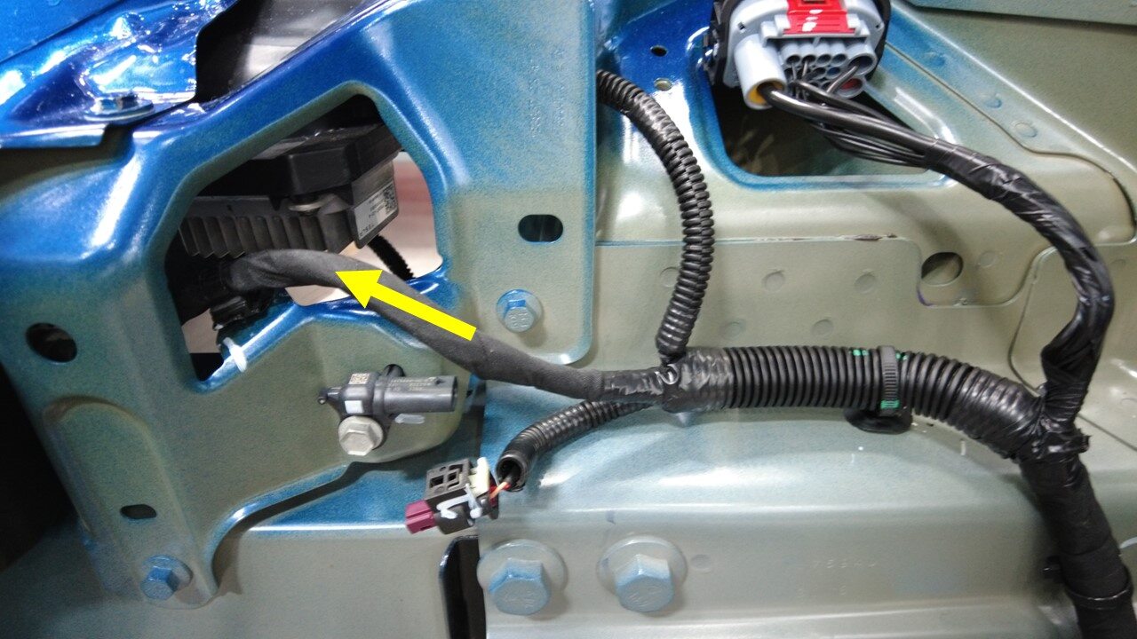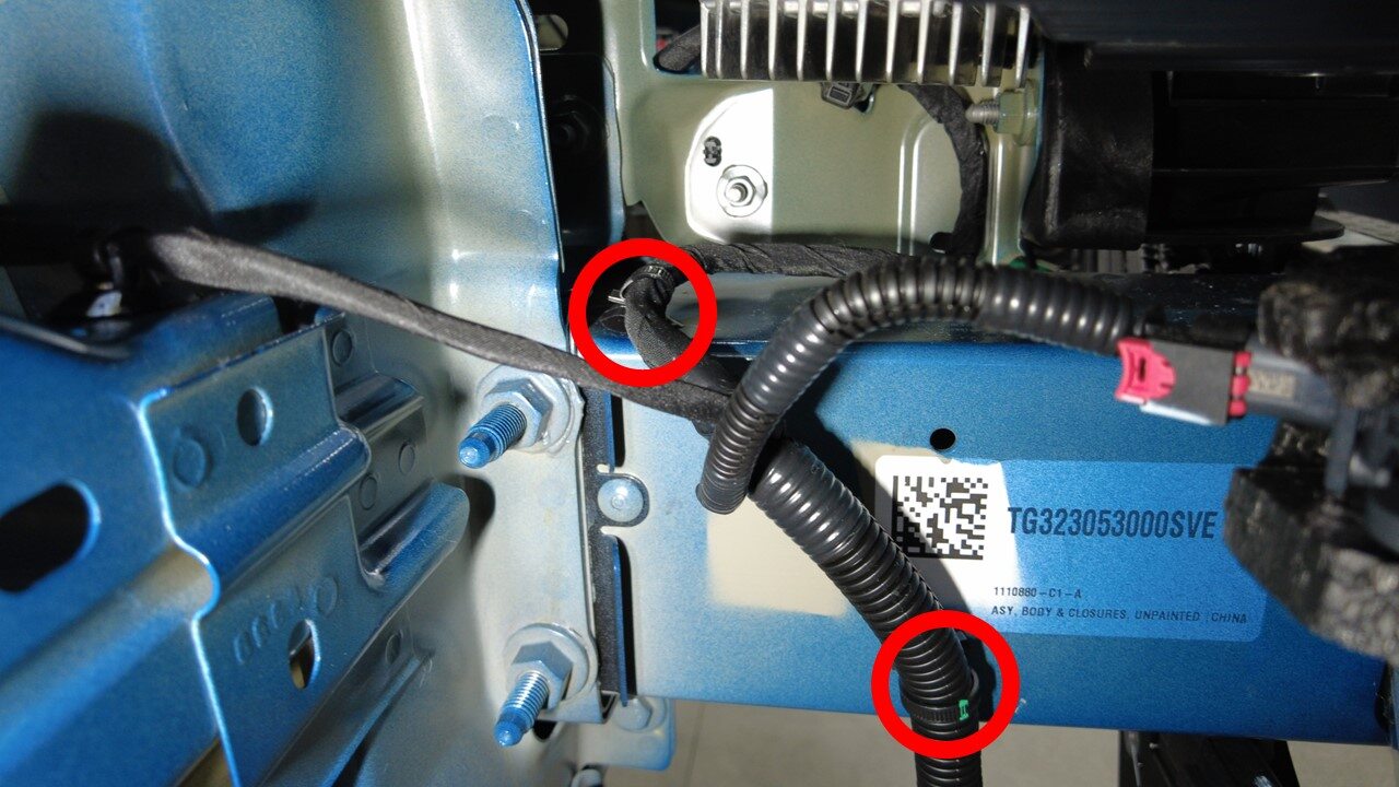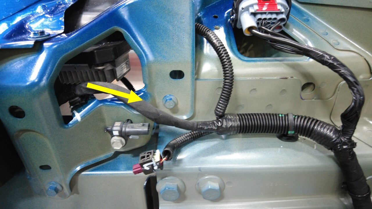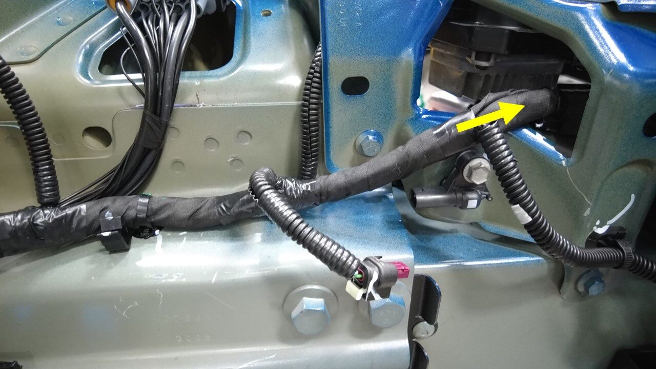- 将右前部线束从前备箱排布到右侧轮毂内衬区域
