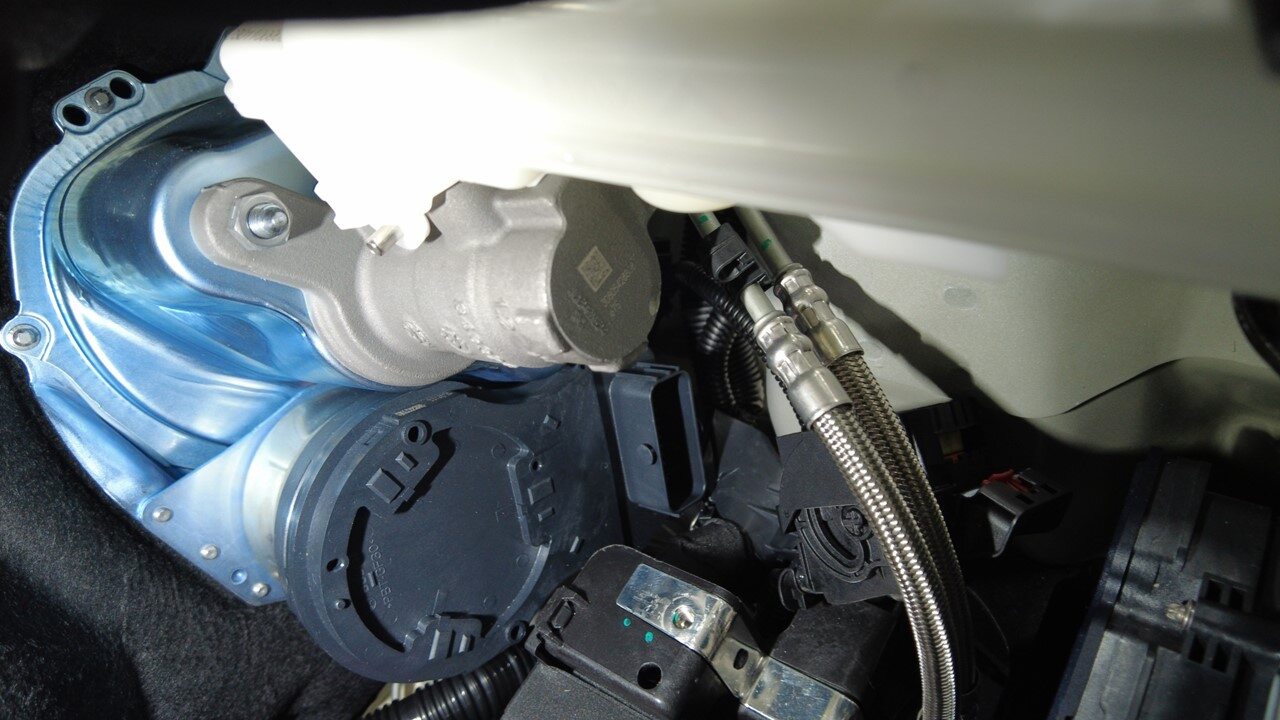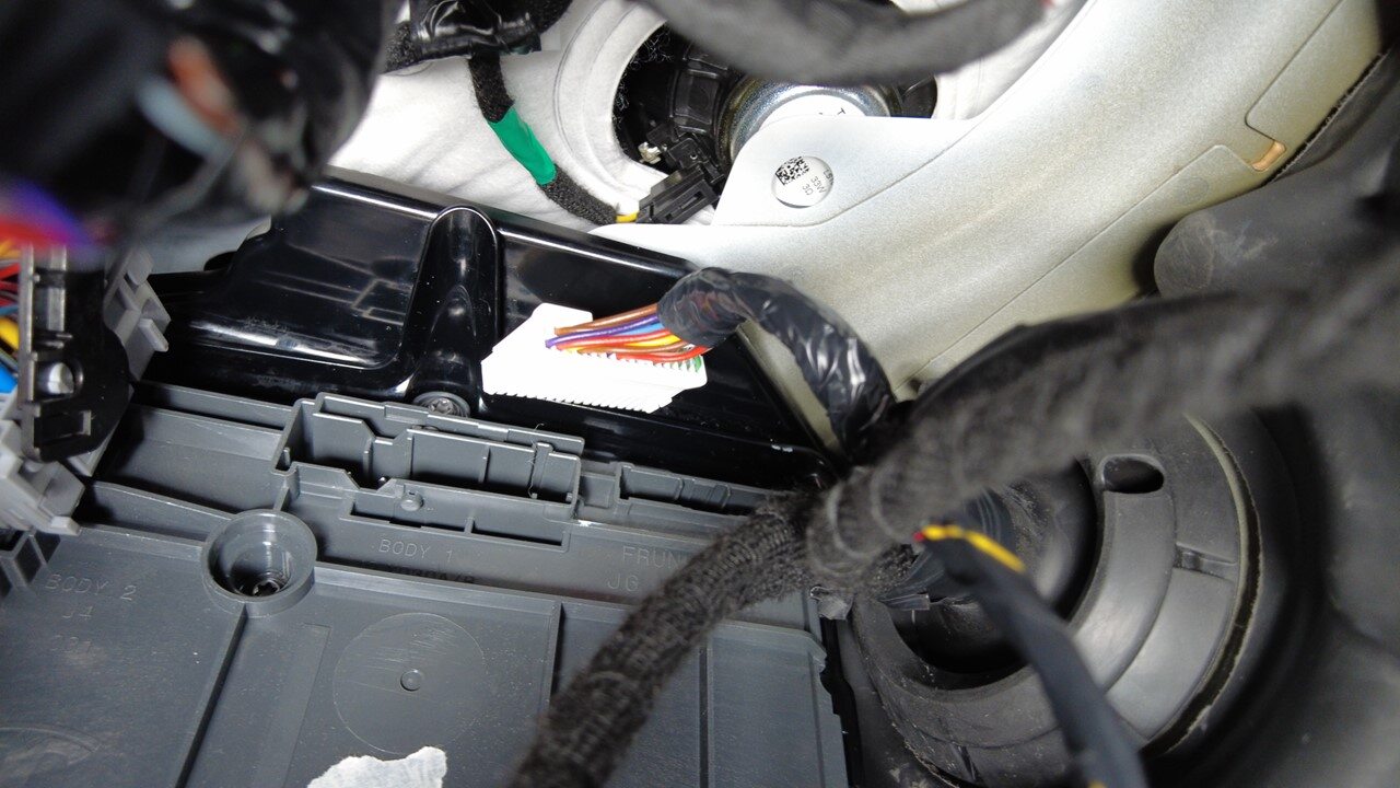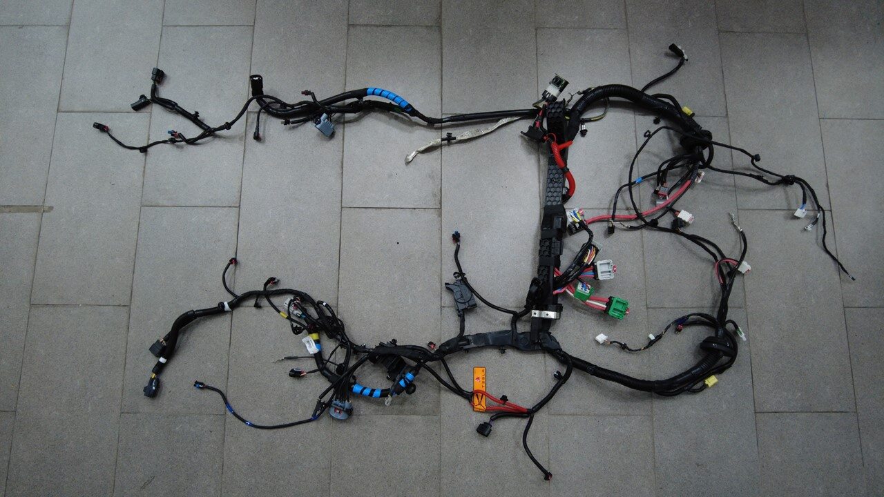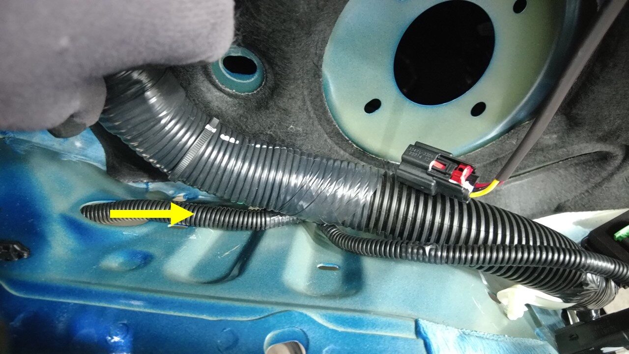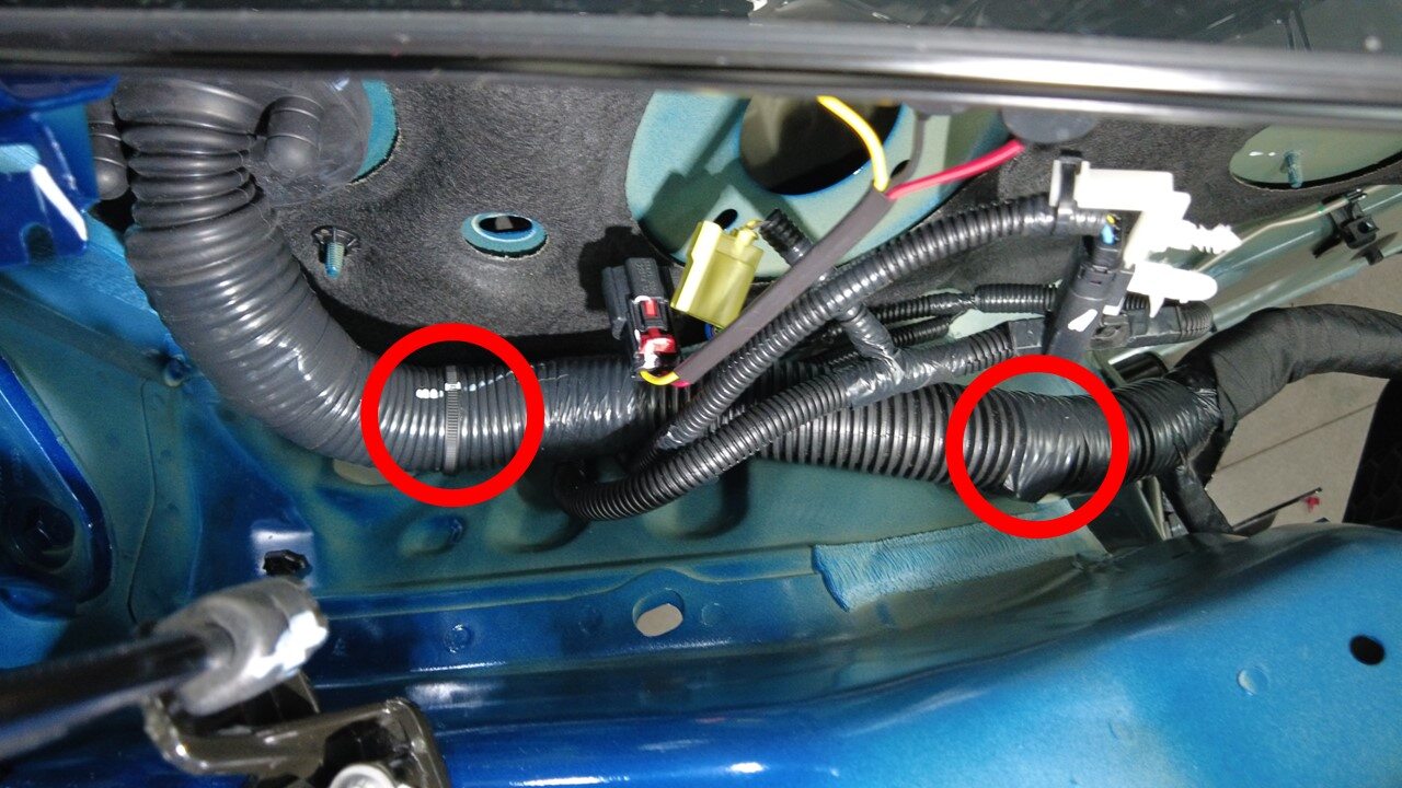 - 将右前部线束从前备箱排布到右侧轮毂内衬区域