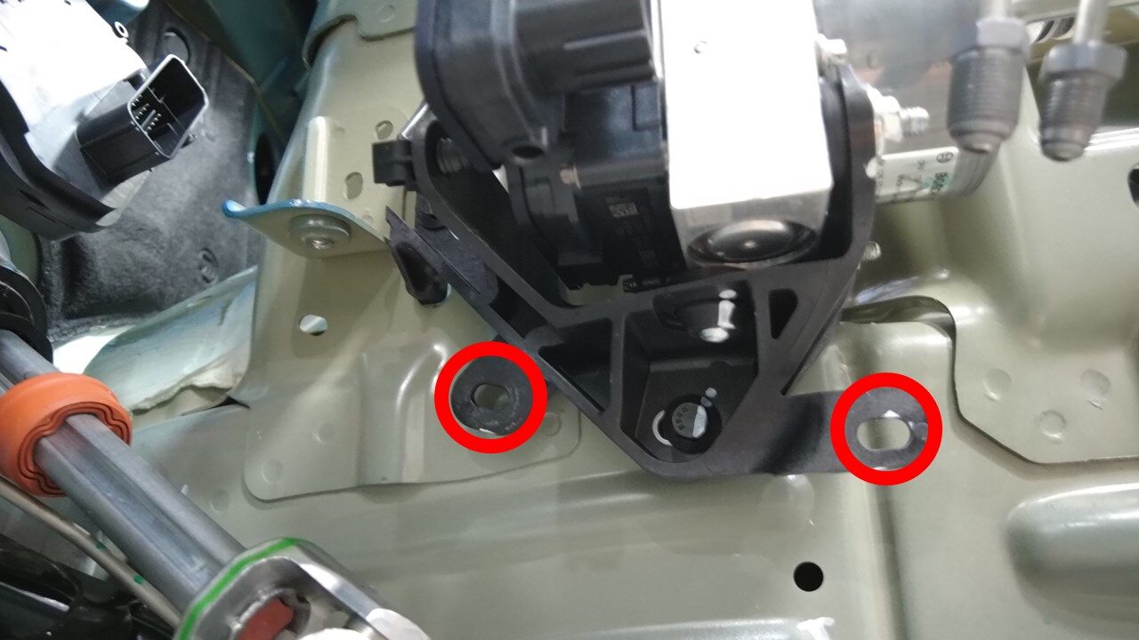 安装将前部线束测试接头固定到右前车架纵梁区域周围的螺栓