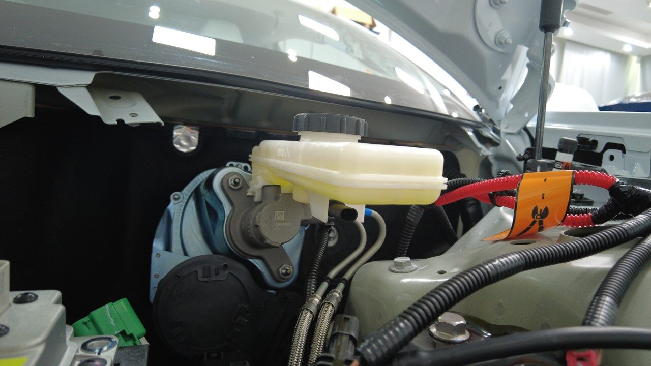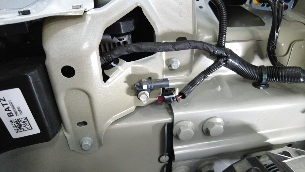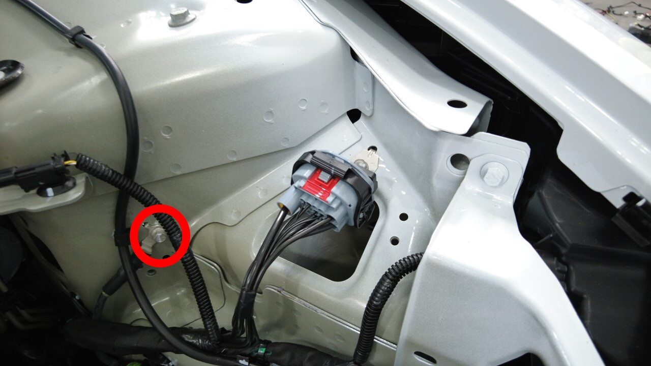 - 将左前部线束从前备箱排布到左侧轮毂内衬区域