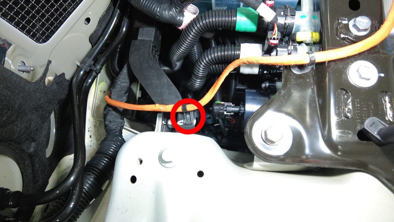 拆下右前车架纵梁区域周围的前部线束测试接头