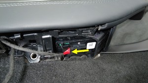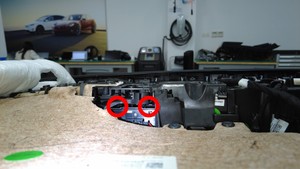 向下按压驾驶位车窗开关总成,同时松开将车窗开关固定到车门饰板的卡子(4 个)。