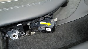 - 使用塑料饰板工具松开将左前下部螺栓帽固定到左前车门饰板的卡子(8 个)。