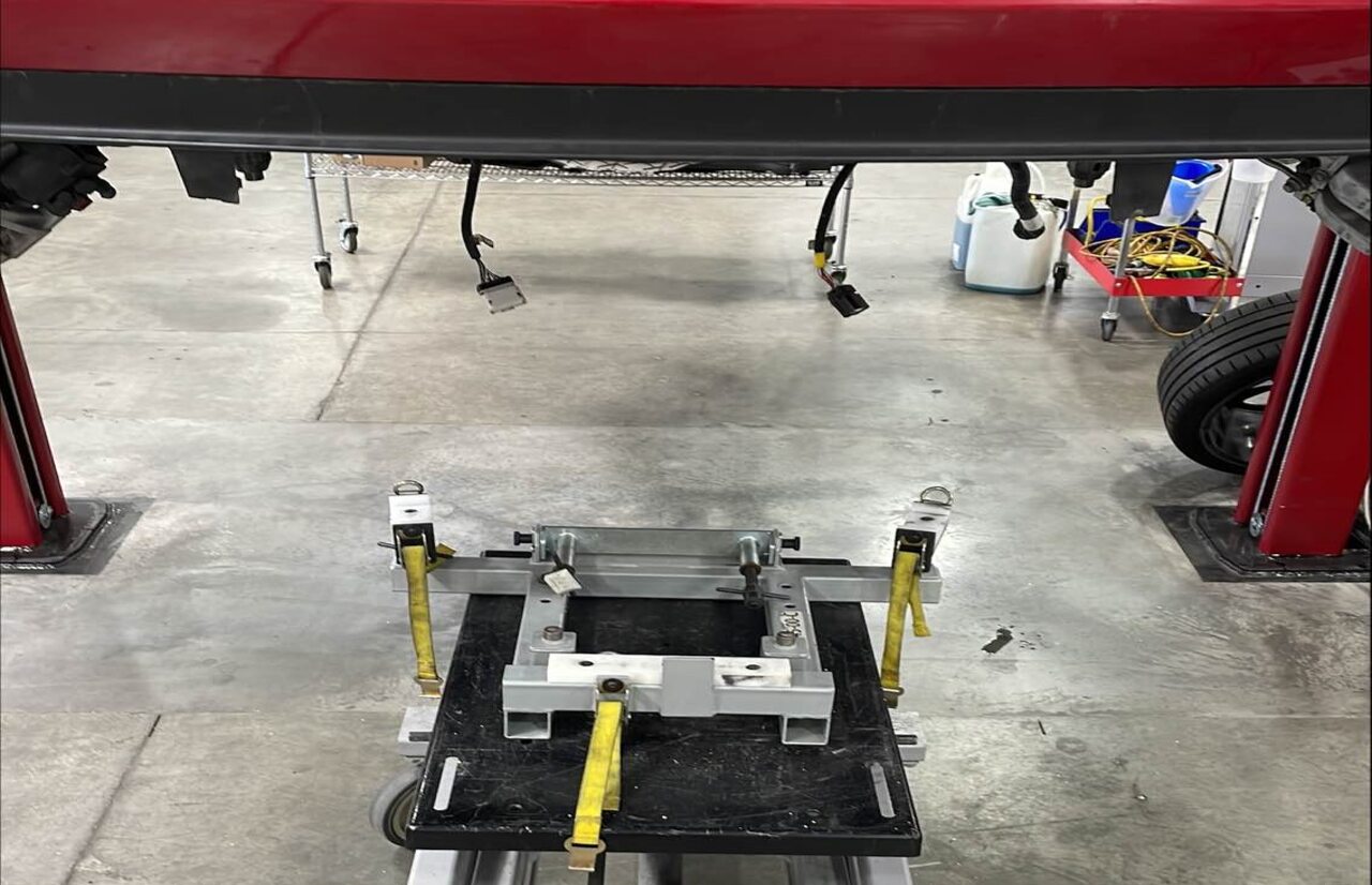 注Set vehicle to comfortable working height, Make sure there's an audible click of locks on both sides before lowering, otherwise vehicle may tilt to side.