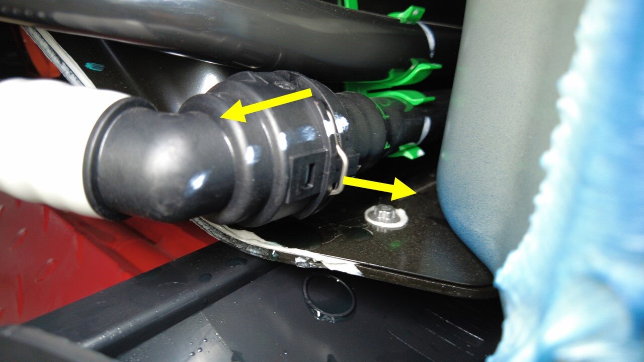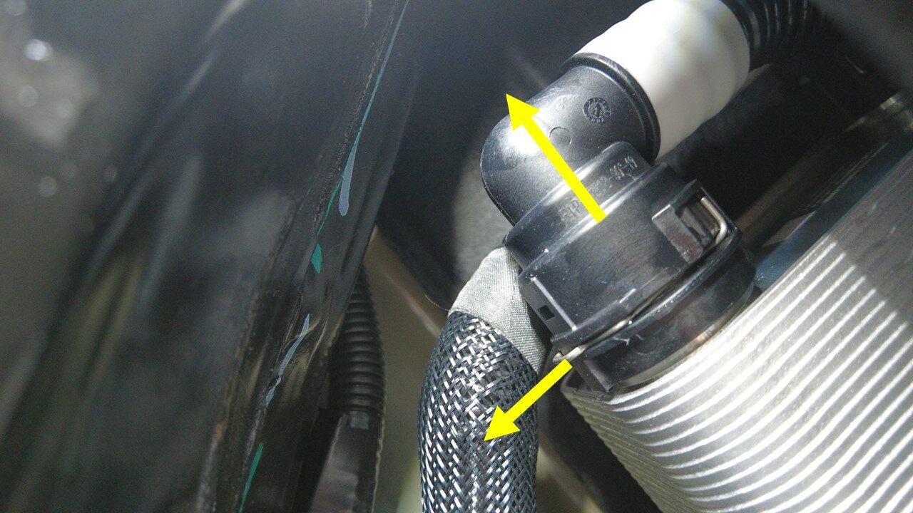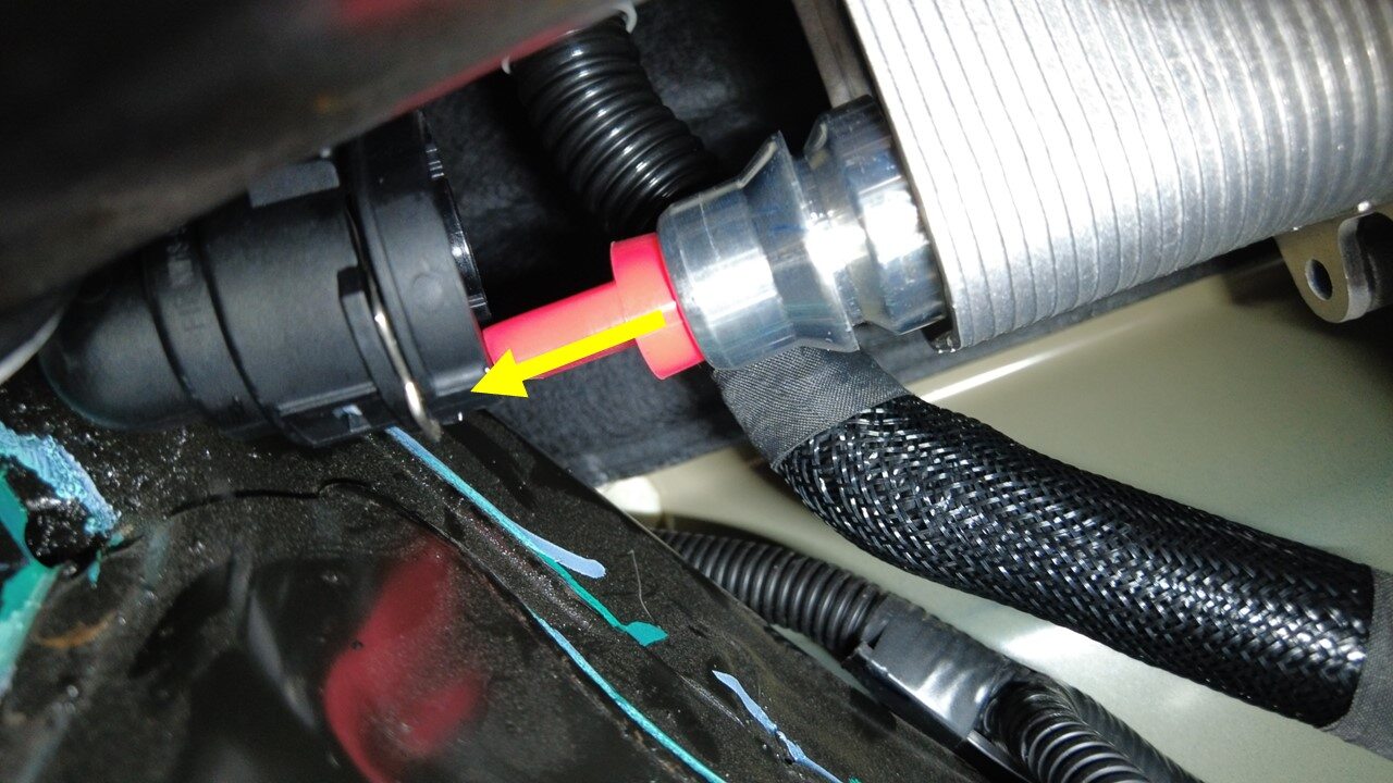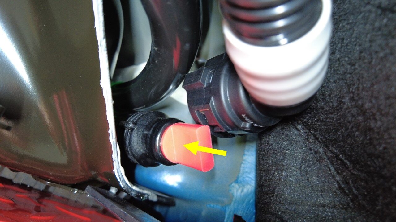 - Remove vacuum refill hose from refill cap on coolant bottle.