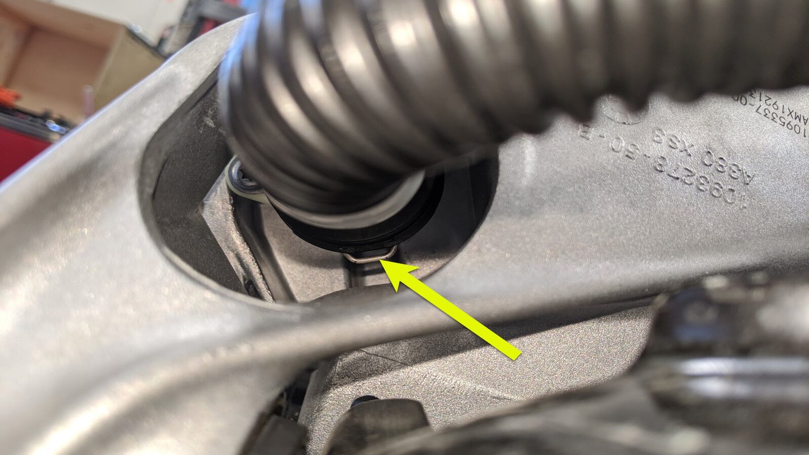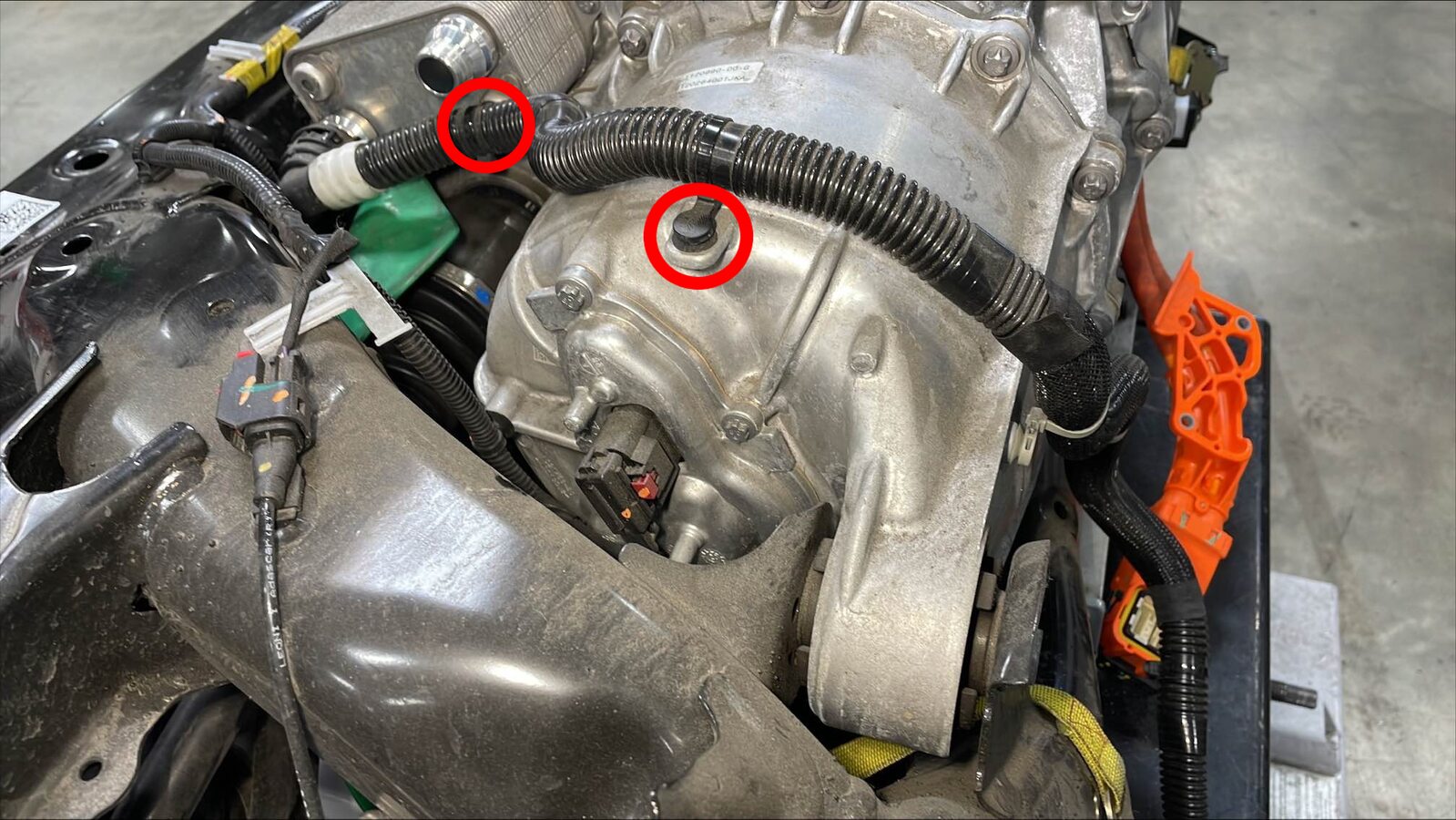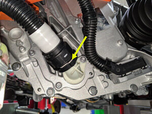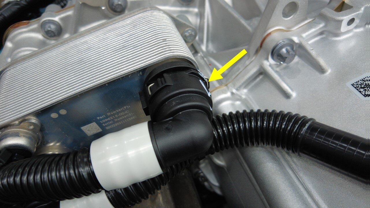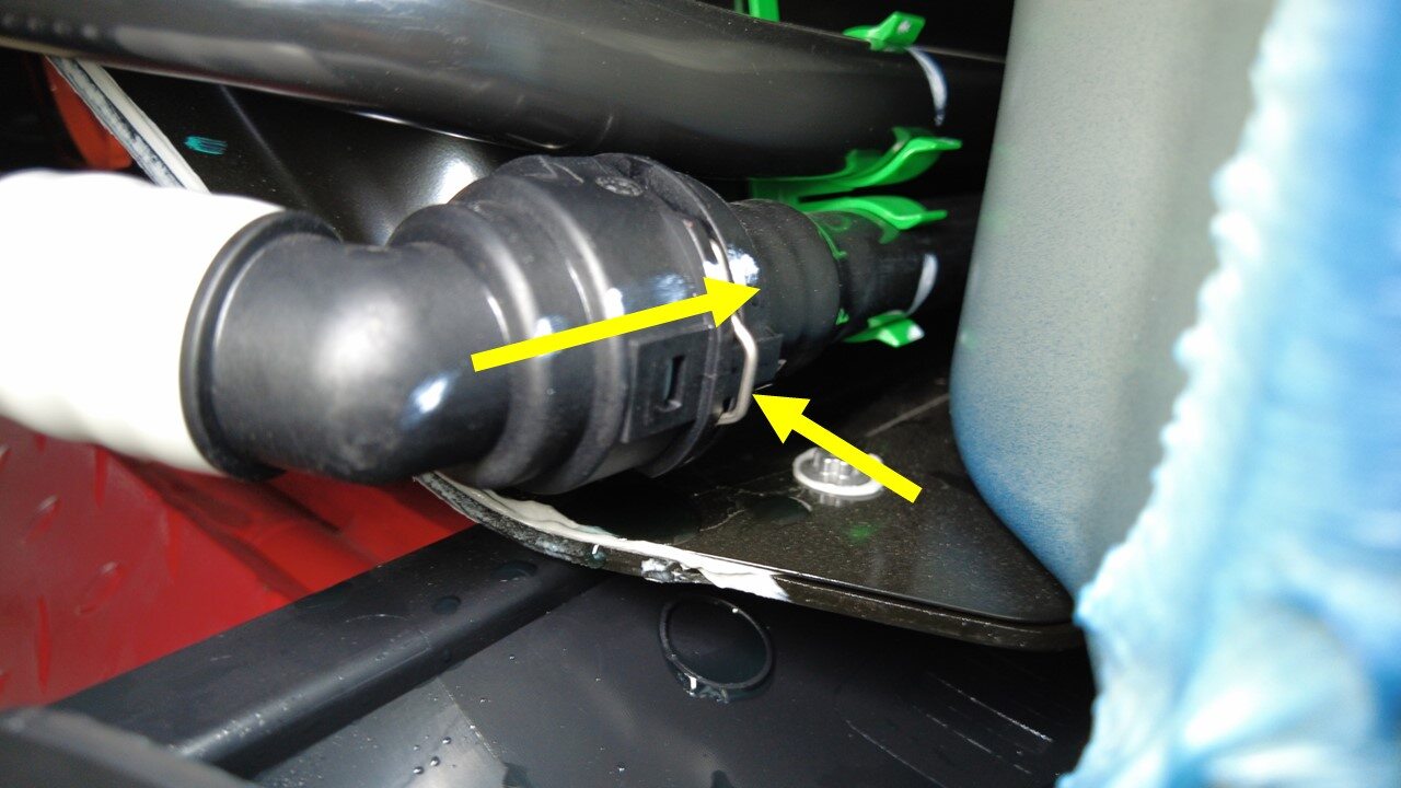 - Remove vacuum refill hose from refill cap on coolant bottle.