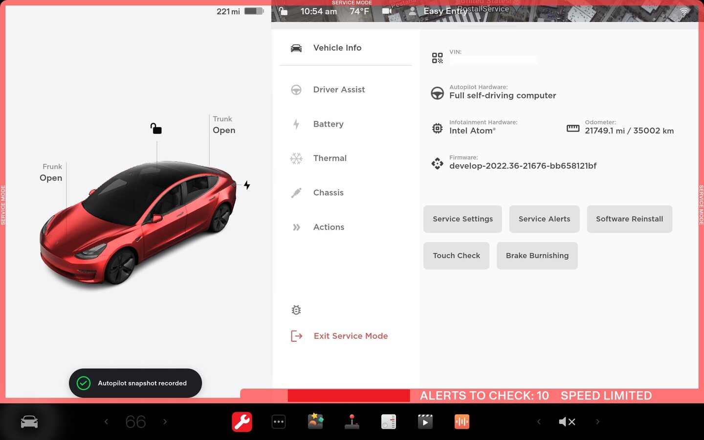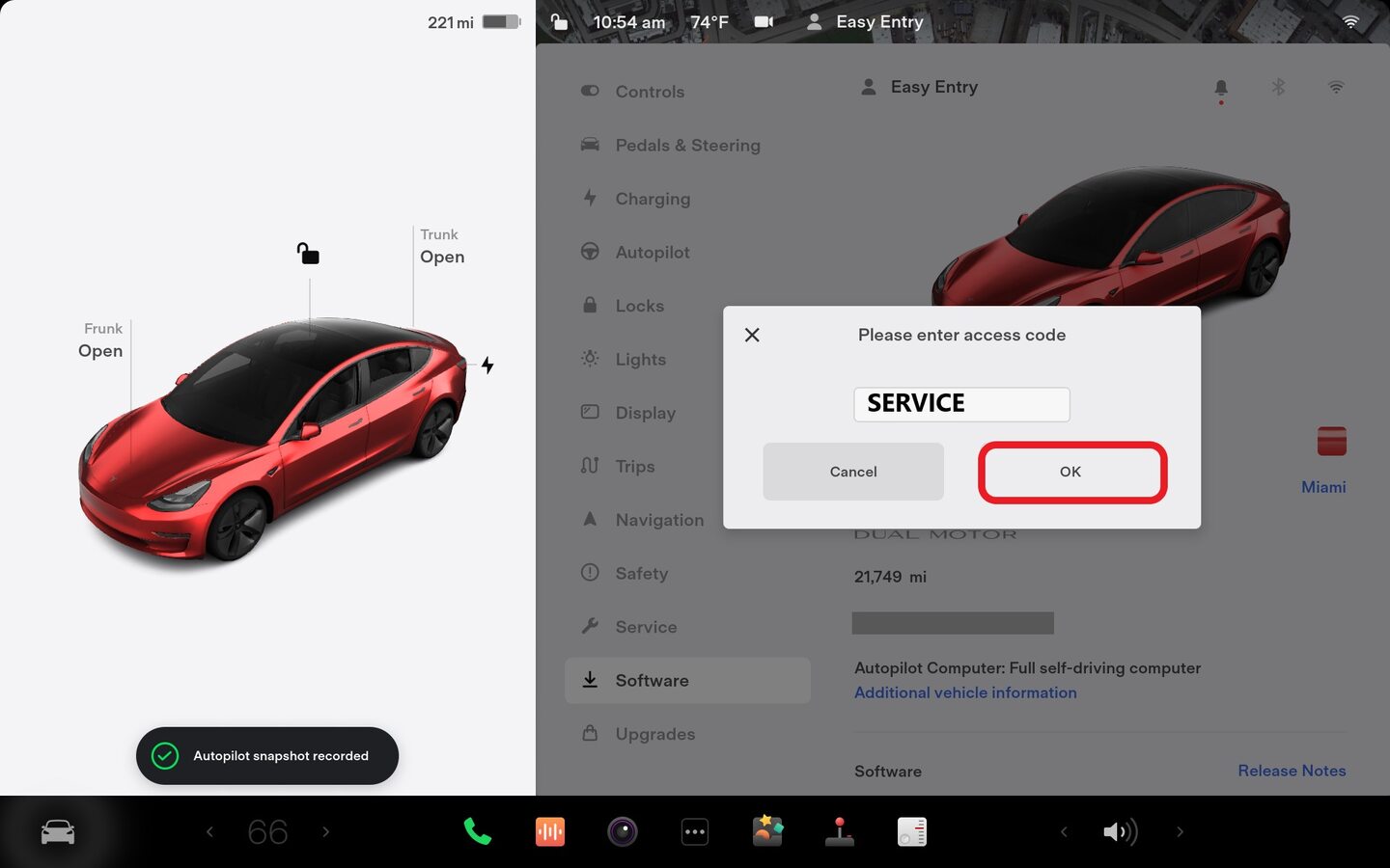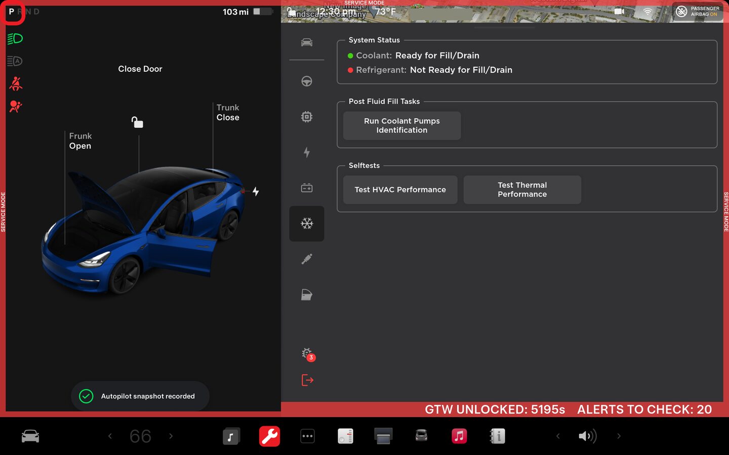 - Hold brake pedal and select park on UI to disable EPB service mode.