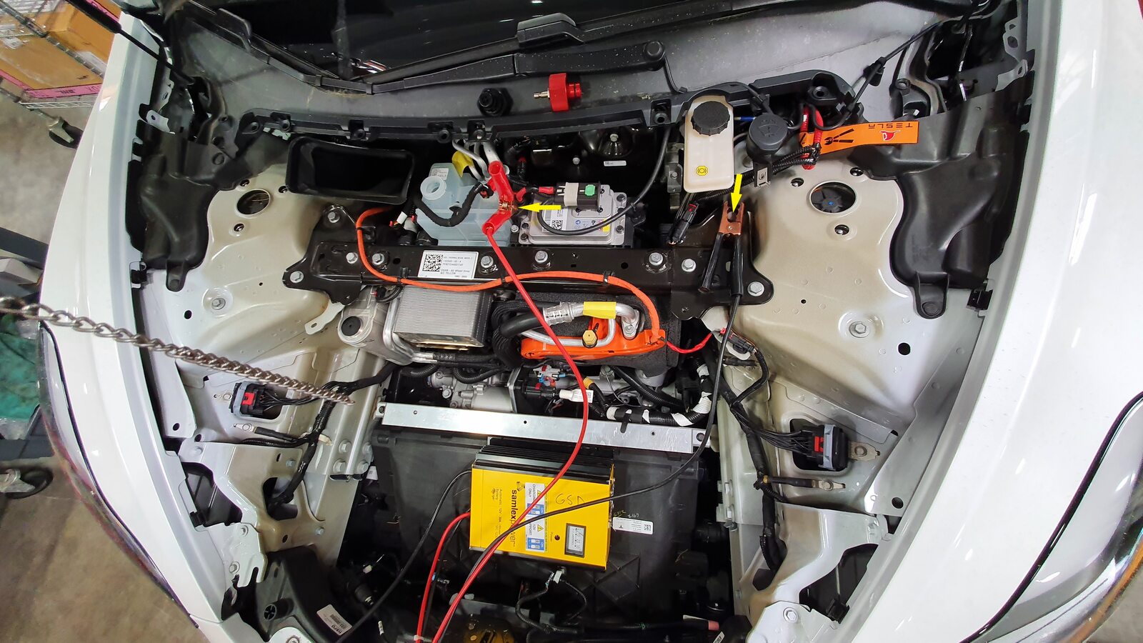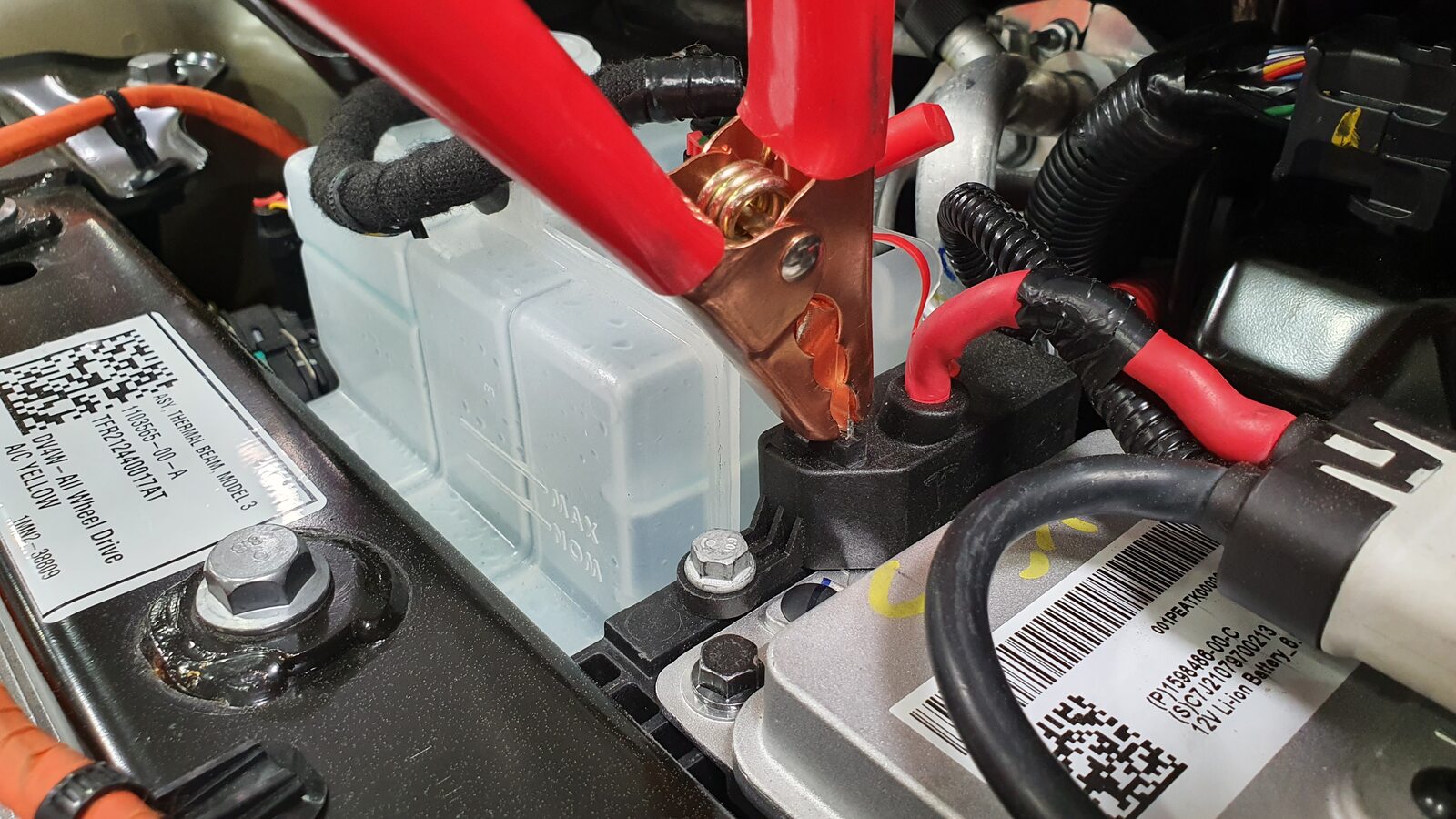 Disconnect low-voltage battery maintenance equipment and connect LV battery.