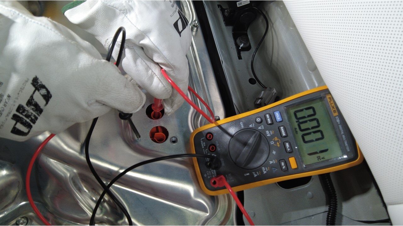 注Make sure to wear PPE (HV gloves, safety glasses) when working on high voltage component, If voltage is greater than 10V, Pack contactors are not open or welded, Stop work and reach out to Service Engineering.