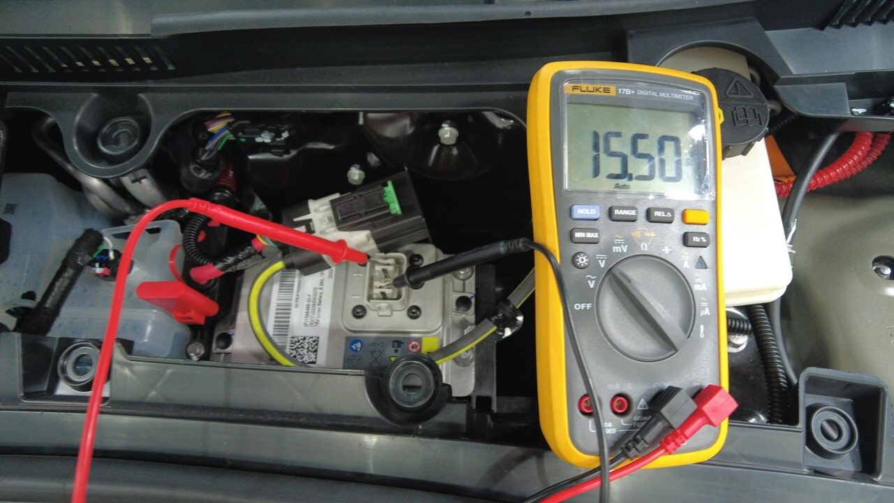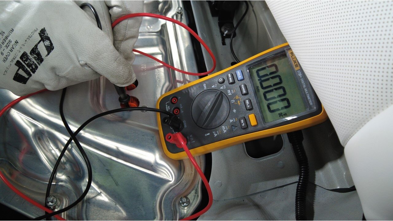 注Set multimeter to DC voltage, Confirm multimeter is properly measuring voltage by testing the 16v battery.
