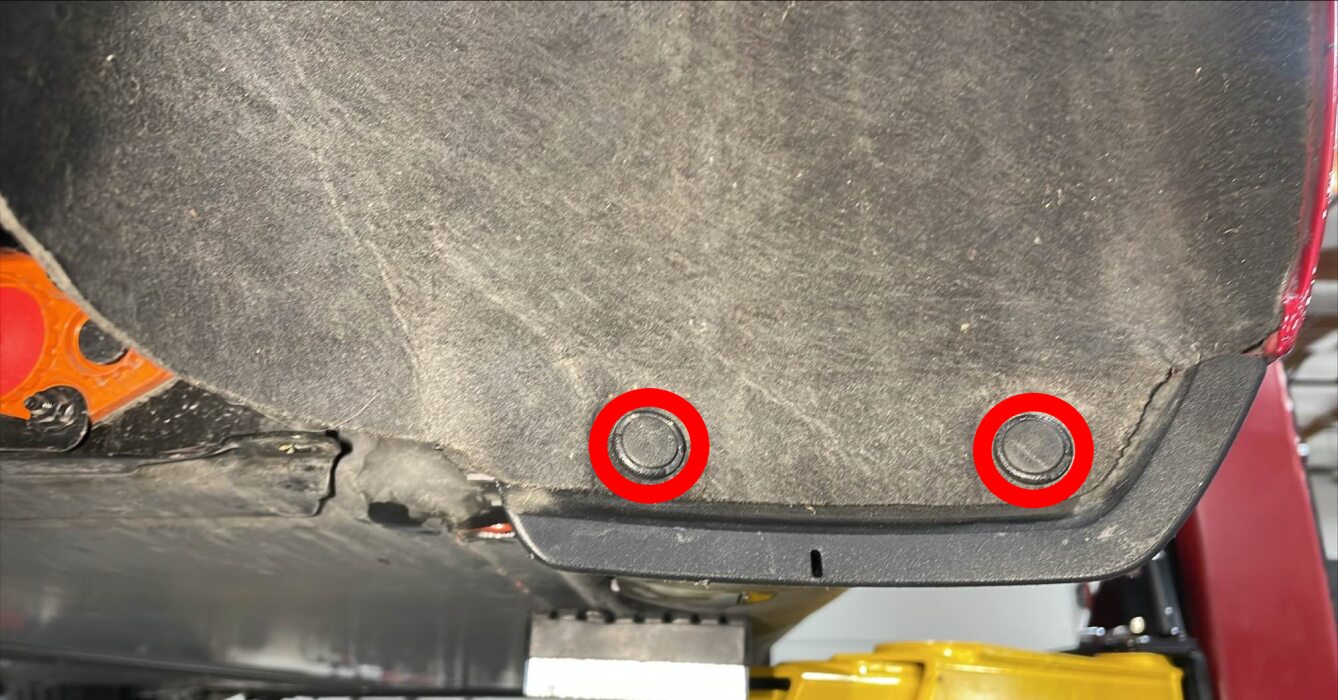 Install LH and RH clips securing rear aero shield to wheel house liner.