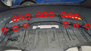 拆下将后饰板扩散器固定到后饰板外侧边缘的螺栓(6 个)。