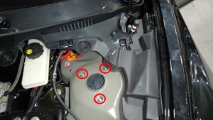 拆卸将左前减震器总成固定到左前上方控制臂支座的螺母(3 个)。