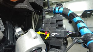 - 松开灰色锁片,然后向下按压锁片以松开前副车架线束连接器。