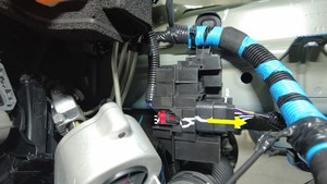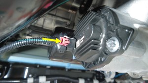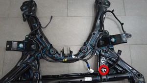 - 将前副车架线束夹紧固到解析器罩壳上。