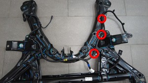 - 将前副车架线束夹(3 个)安装到前副车架左侧。