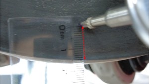 从左后制动盘端部向内量取 30 毫米,对齐数字指示器,然后将指示杆下压归零。