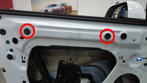 - 拆卸遮盖车窗升降器螺母检修孔的螺塞(2 个)。