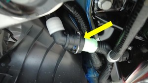 - 将冷却液排放接头适配器与动力总成回流软管的外接口侧相连。