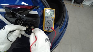 警告如果低压辅助电池端子间的电压低于 14V 或高于 18V,则说明万用表的测量不可靠,此时不得使用。仅允许使用可正常工作的万用表。