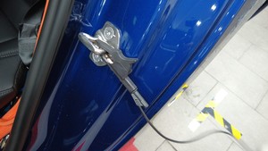 - 将黑色的负极鳄鱼夹连接到左后车门撞销。