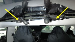 松开将顶篷后部固定到车辆的卡子(4 个)和定位销。