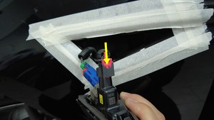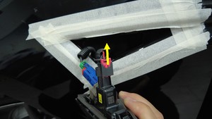 - 揭下左前侧中继总成周围左侧翼子板上的保护胶带。