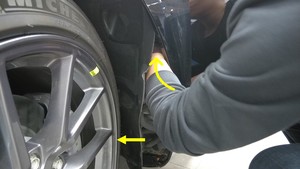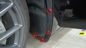 - 如图所示,松开卡子(4 个)以部分拆下左前轮拱内衬,即可接触作业区域。