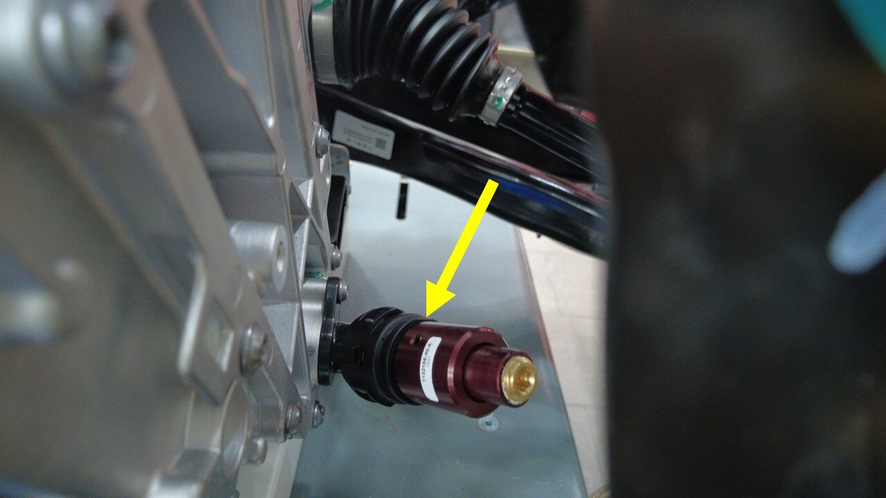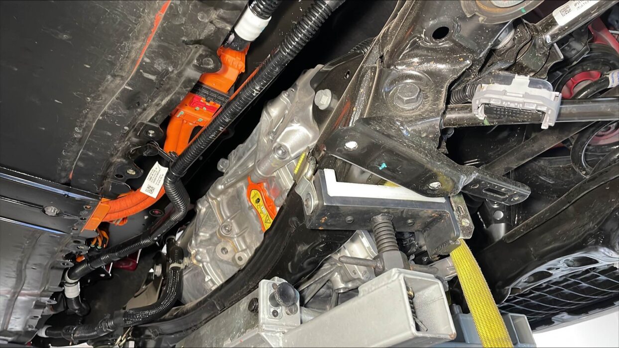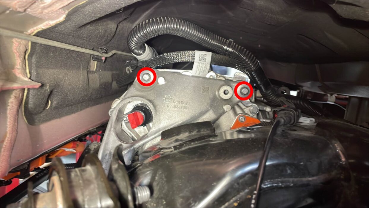 安装将驱动单元固定到副车架的左侧支座螺栓。