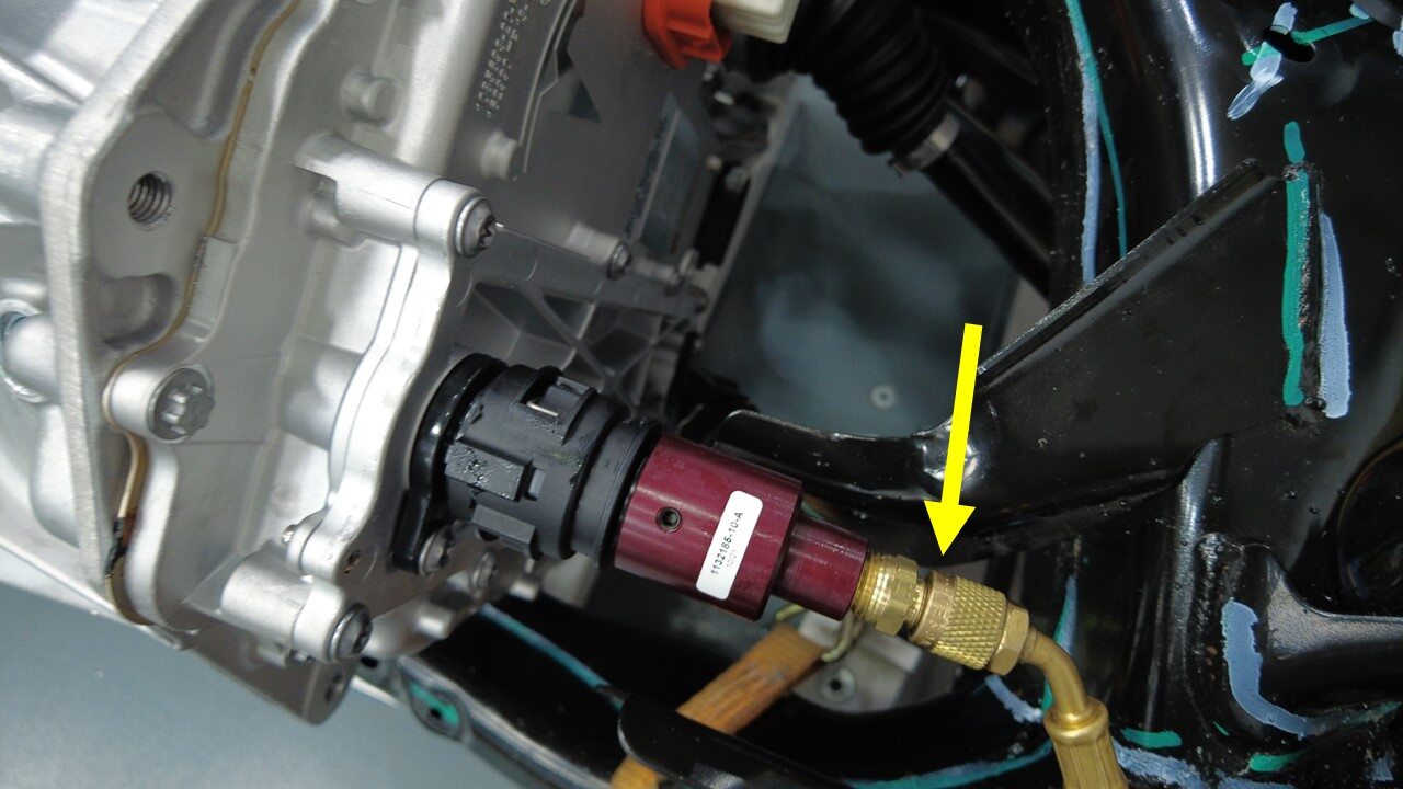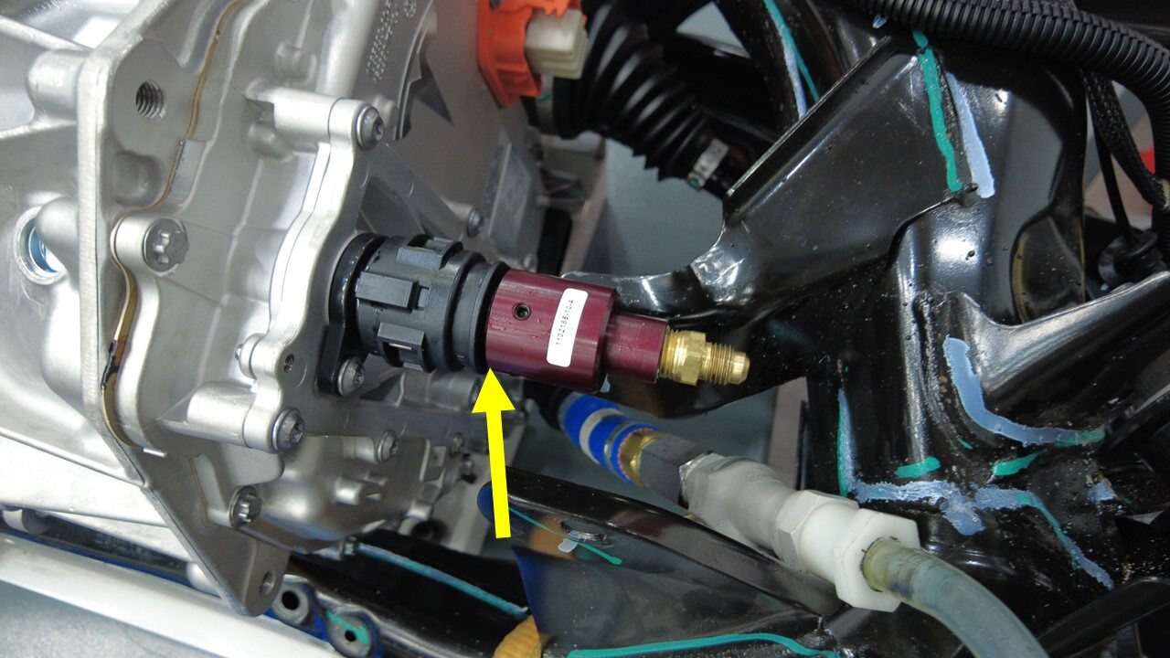 将驱动单元压力测试固定装置连接到冷却液泄漏测试适配器。
