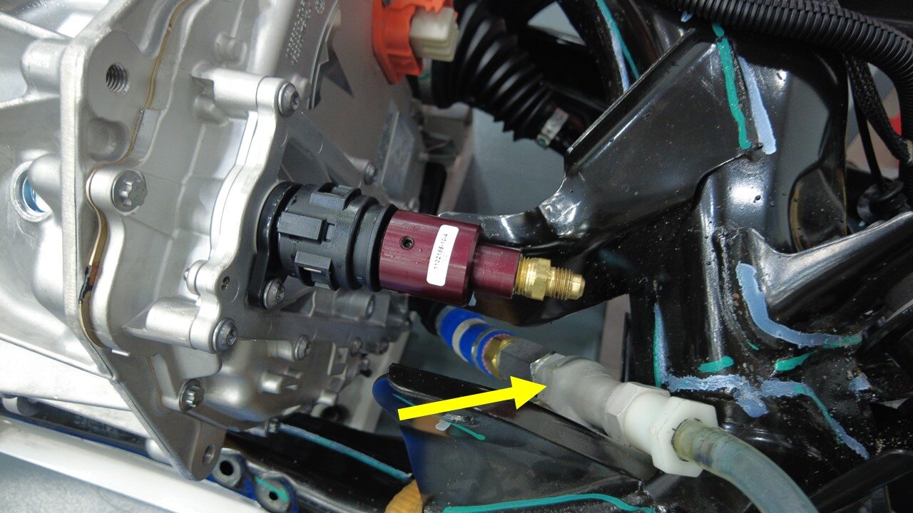 将驱动单元压力测试固定装置从冷却液泄漏测试适配器上断开。
