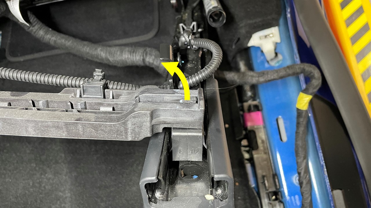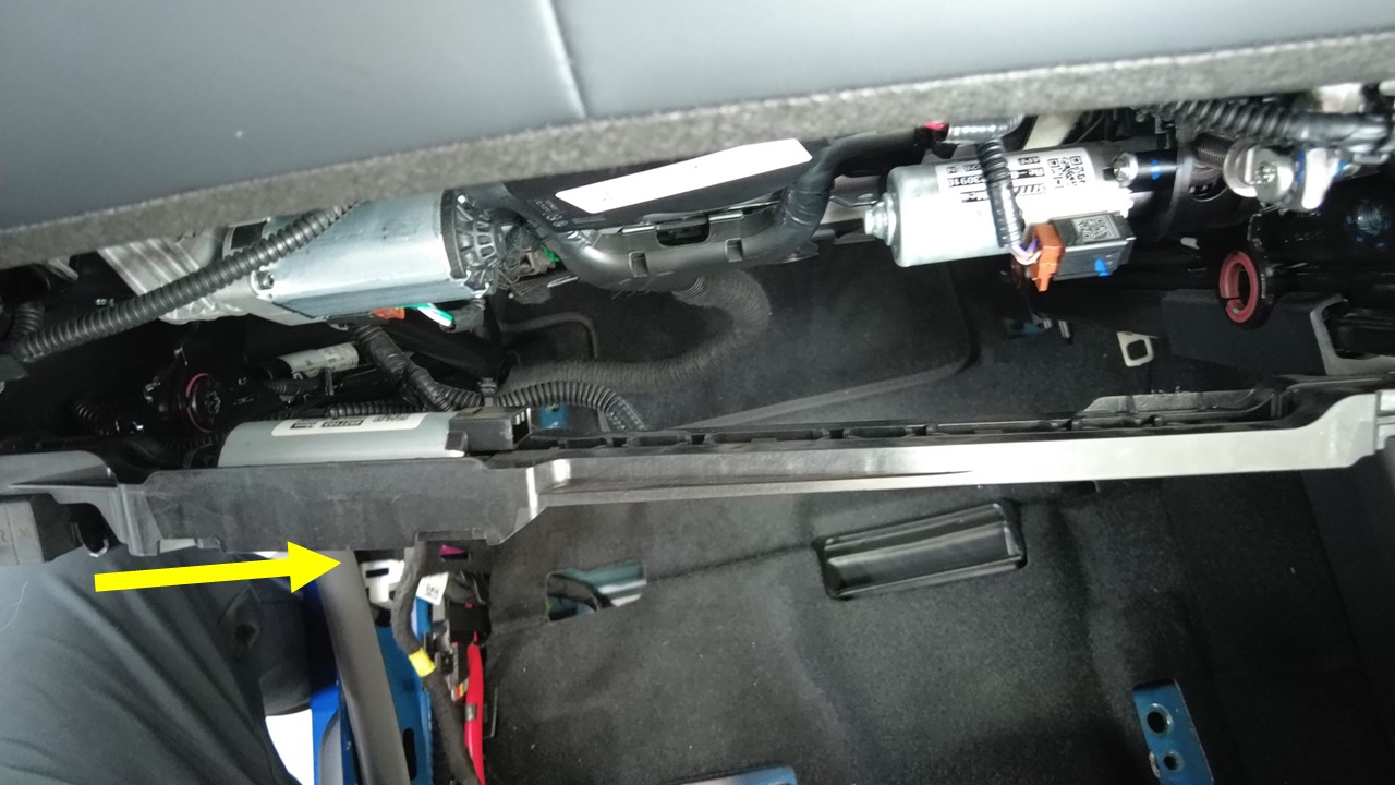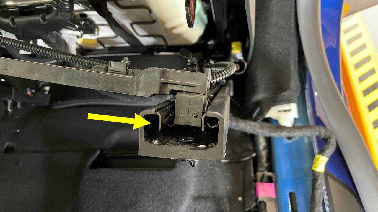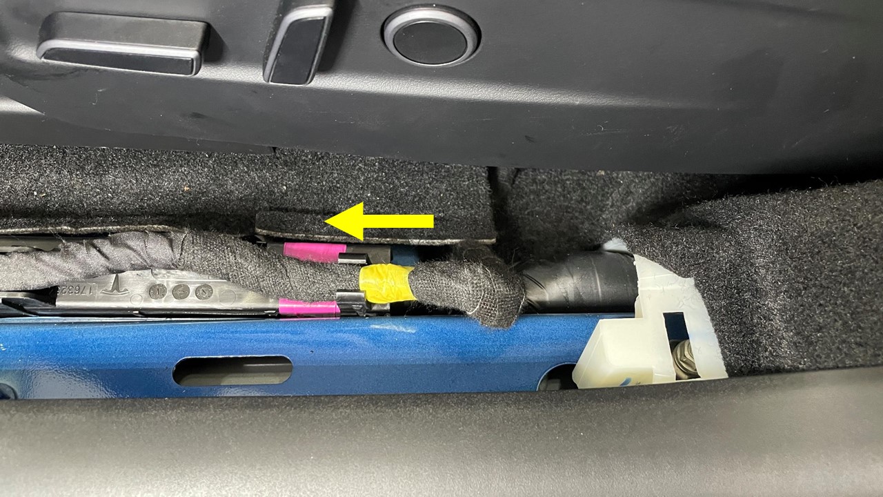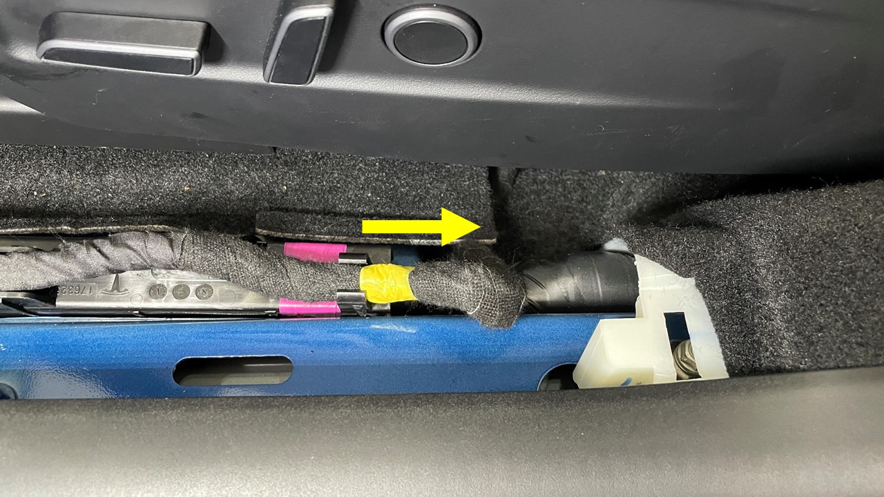 - 将左前座椅线束从驾驶室左前地毯下方拉出。